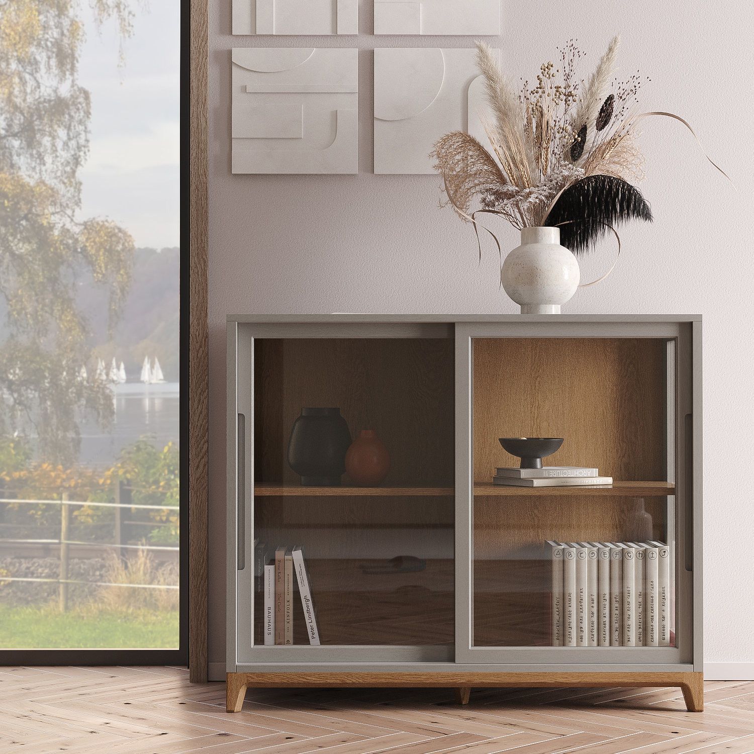 — Все внутренние детали витрины покрыты натуральным шпоном дуба;