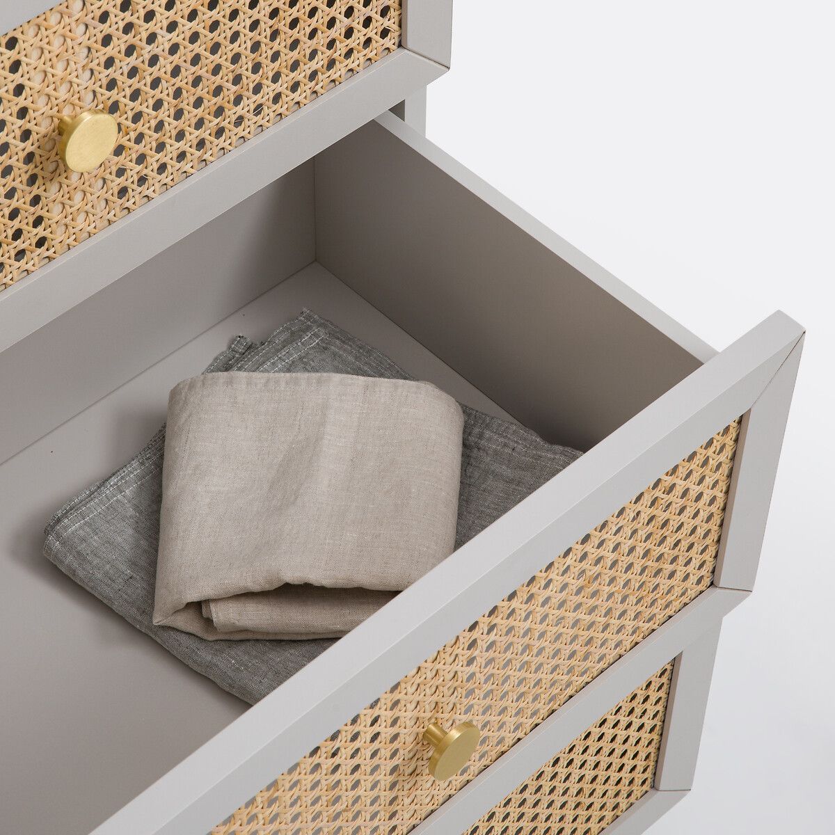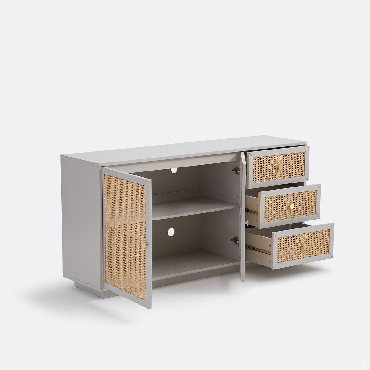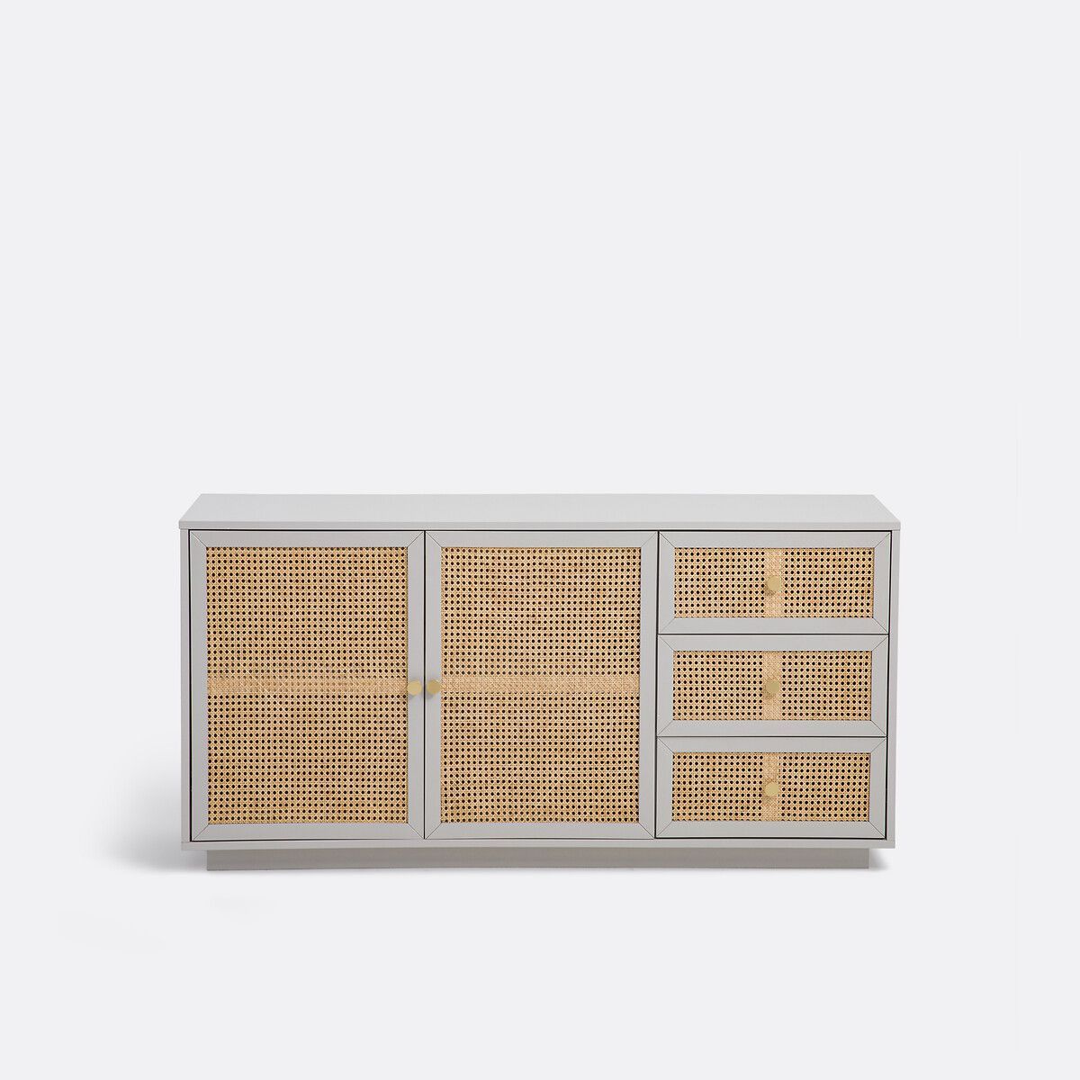 Этот элегантный и функциональный предмет мебели сочетает в себе древесину МДФ, массив сосны и ротанговое полотно. Сервант Paola имеет внутренние полки за дверцами и три вместительных ящика, которые идеально подойдут для хранения домашнего белья, посуды, столовых приборов и других необходимых вещей. Этот стильный элемент интерьера станет украшением вашей гостиной. Дизайнерское творение от La Redoute Intérieurs.