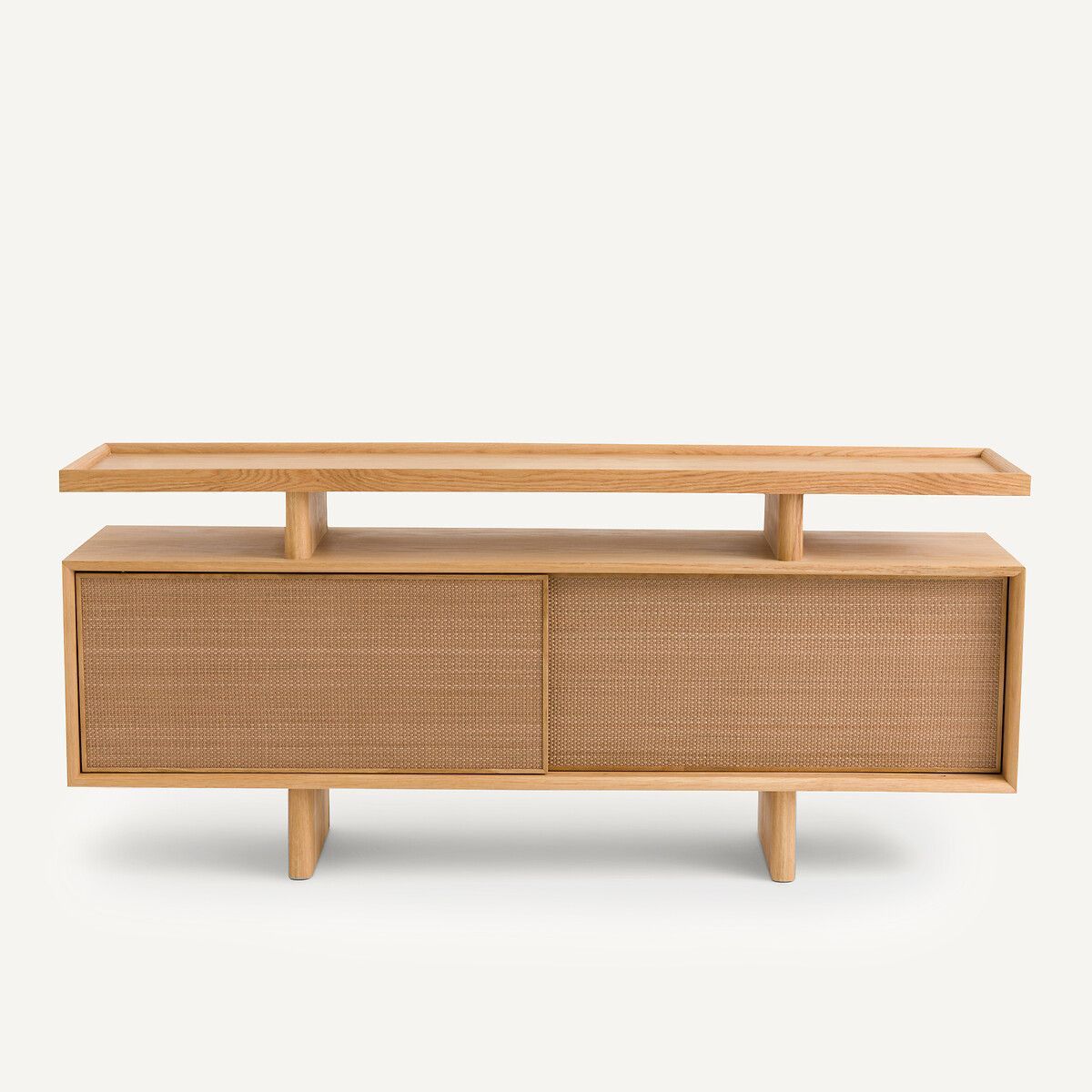 Шкаф для посуды в стиле модерн состоит из ящика, столешницы с бортиками, ножек и перекладин из того же дерева. Большое пространство для хранения за двумя раздвижными дверками и две съемные и регулируемые полки. Эксклюзив от AMPM.