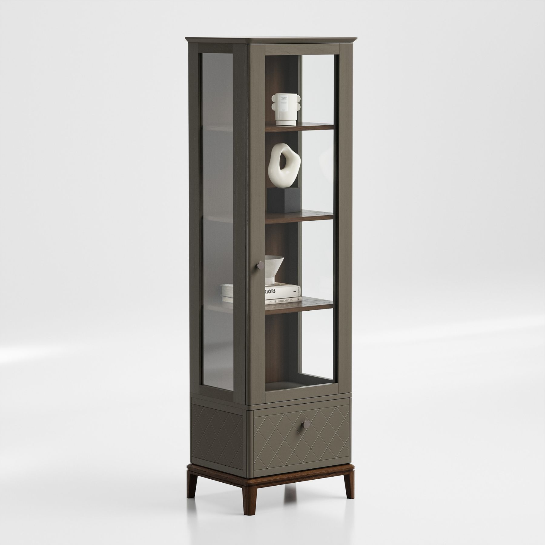Стильная узкая витрина Crystal на изящных ножках станет украшением любого интерьера. Свет, проникая сквозь стеклянные фасады витрины, выгодно подчеркнет красоту хранящихся в ней ценностей. Витрину можно использовать как самостоятельно, так и в виде гарнитура из нескольких предметов, формируя завершенный и благородный образ интерьера.
