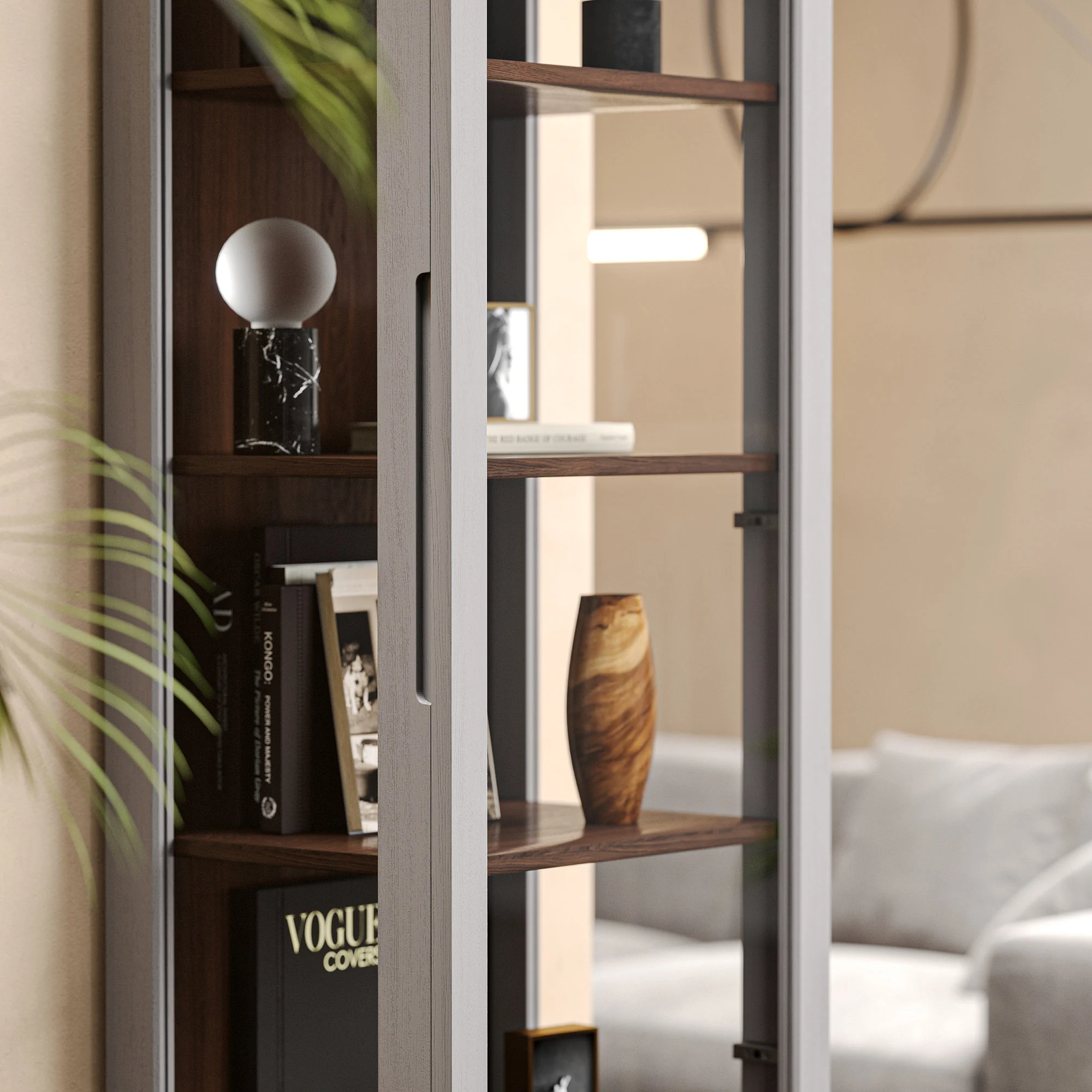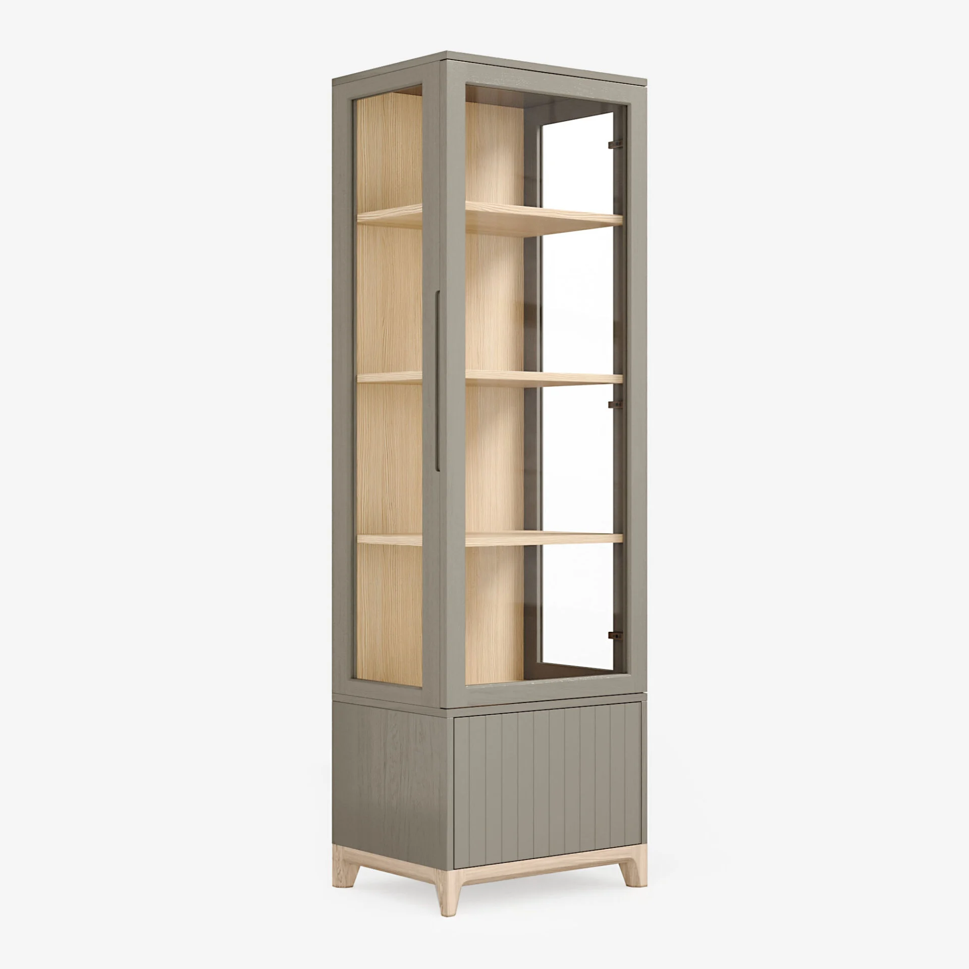 Узкая витрина из коллекции CASE станет украшением любого интерьера. Компактные габариты позволят разместить ее даже в небольших пространствах. Элегантные стеклянные фасады с трех сторон придают легкость конструкции и защищают от пыли хранящиеся в ней предметы. Витрина состоит из четырех секций с полками и выдвижным ящиком, который скрыт за фасадом с авторской гравировкой. Витрину можно использовать как самостоятельно, так и собрать гарнитур из нескольких предметов, формируя завершенный и благородный интерьер.