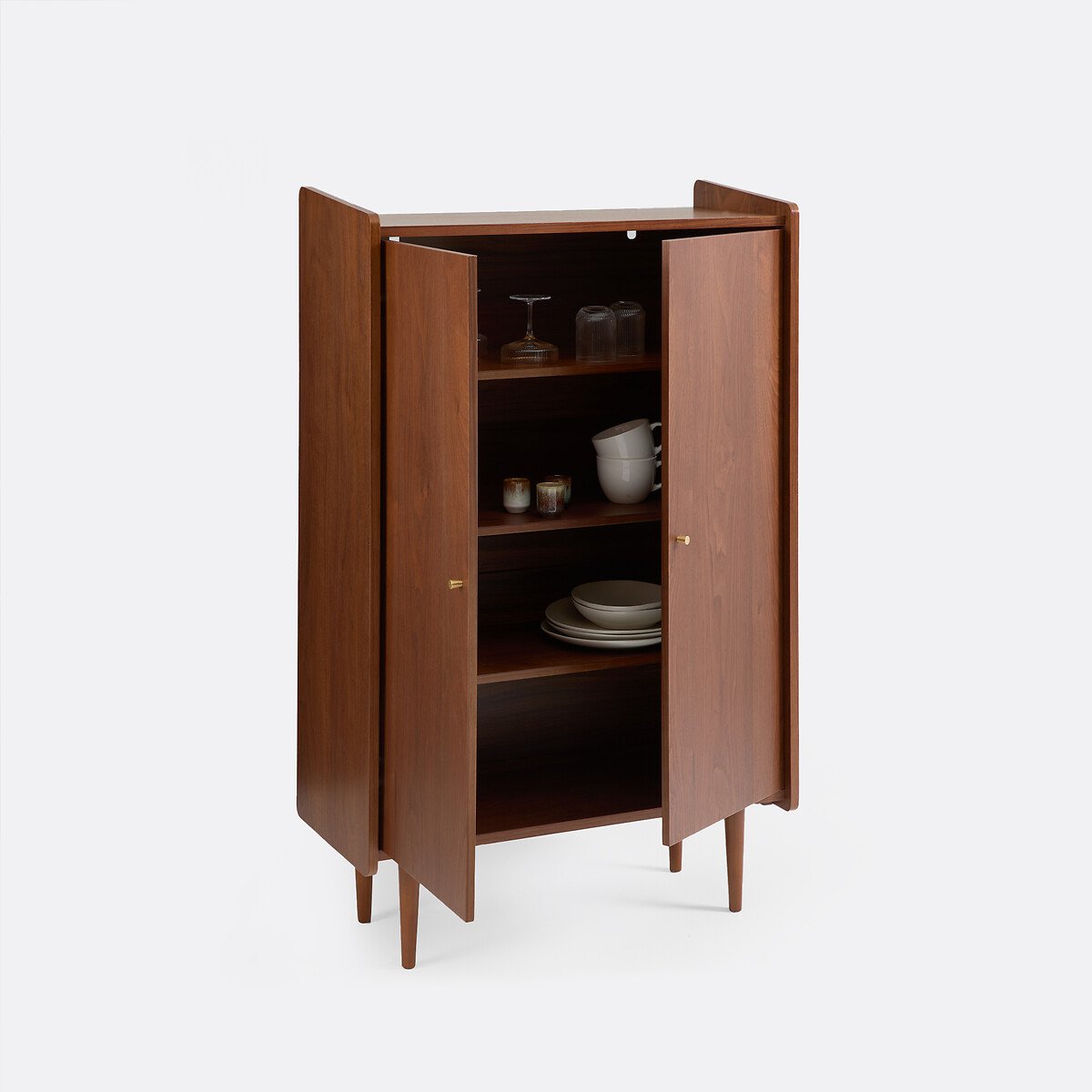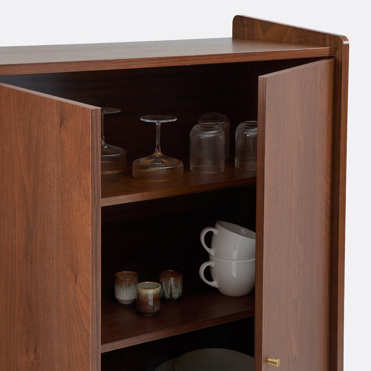 Ореховый шпон, латунные детали... Буфет Ronda / Ронда благодаря форме в эстетике 60-х годов создаст в гостиной винтажную атмосферу . Функциональный, он предоставляет достаточно места для хранения посуды, столового белья и т.д.Творение La Redoute Intérieurs. Описание • 2 дверцы, 1 фиксированная полка, 2 съемные регулируемые по высоте полки • Каркас из МДФ со шпоном орехового дерева, НЦ-лакировка • Конусные ножки из массива сосны, тонированной под орех, с покрытием нитроцеллюлозным лаком • Ручки в отделке под латунь • Требуется фиксация к стене • Количество человек, рекомендованное для сборки: дваКачество • Система soft closing: система плавного бесшумного закрывания ящиков.РазмерыОбщие размеры • Ширина: 84,3 см • Высота: 133 см • Глубина: 38,3 см • Вес: 42,45 кгВнутренние размеры • Ниша без полки: Д80,7 x В24,9 x Г38,3 см • Высота ножек: 20 смДоставкаСамостоятельная сборка. Доставка осуществляется до квартиры по предварительной договоренности. Внимание! Убедитесь, что товар возможно доставить на дом с учётом его габаритов (проходит в двери, по лестницам, в лифты). • ДРЕВЕСИНА ИЗ УСТОЙЧИВО УПРАВЛЯЕМЫХ ЛЕСОВ И КОНТРОЛИРУЕМЫХ ИСТОЧНИКОВ. Древесина FSC® Mixte содержит минимум 70% переработанной древесины. Остальное — древесина, сертифицированная FSC®.Размеры и вес упаковкиДве упаковки • Ш98 x В17 x Д46 см, 25 кг • Ш131 x В13 x Д48 см, 25 кг