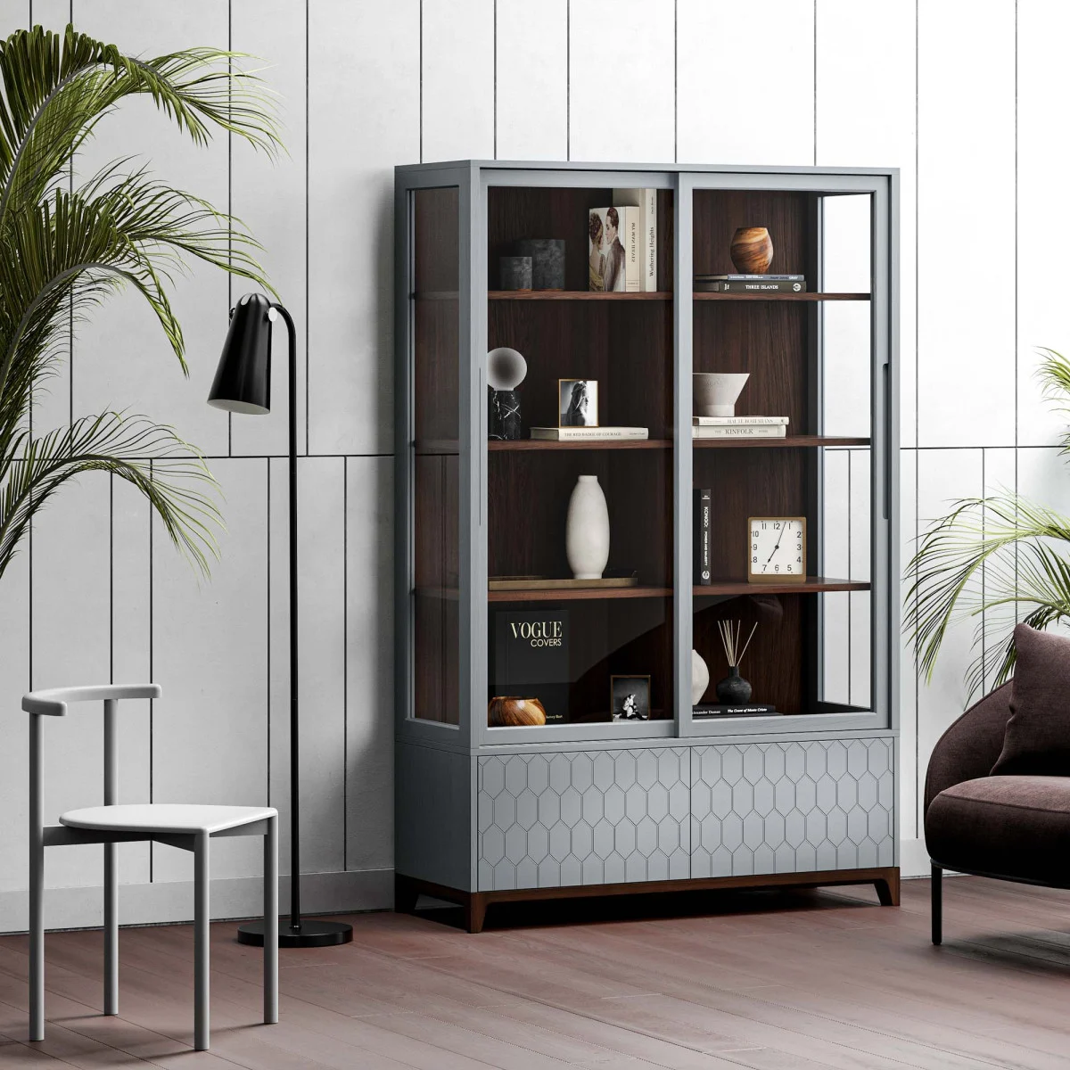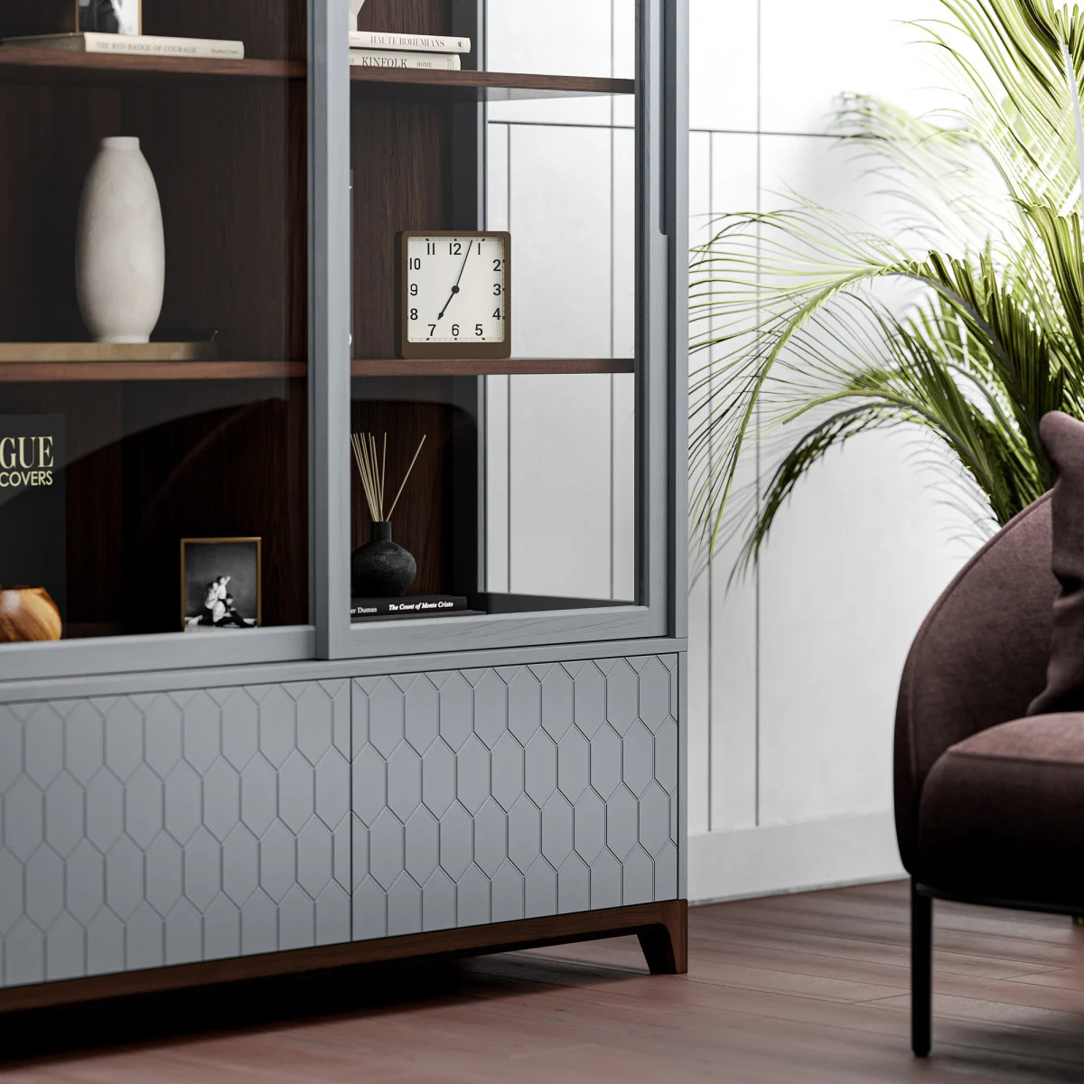 Витрина Case CS159 поможет организовать домашние коллекции, помня о главном — стильном интерьере и комфорте. Если вы устали от однообразия корпусной мебели, то данная витрина добавит новизны и элегантности вашему пространству. Элегантные стеклянные фасады с трех сторон придают легкость конструкции и защищают от пыли хранящиеся в ней предметы. В выдвижных ящиках найдется место для объемных и весомых вещей, а на полках — для праздничного декора, бокалов и книг.