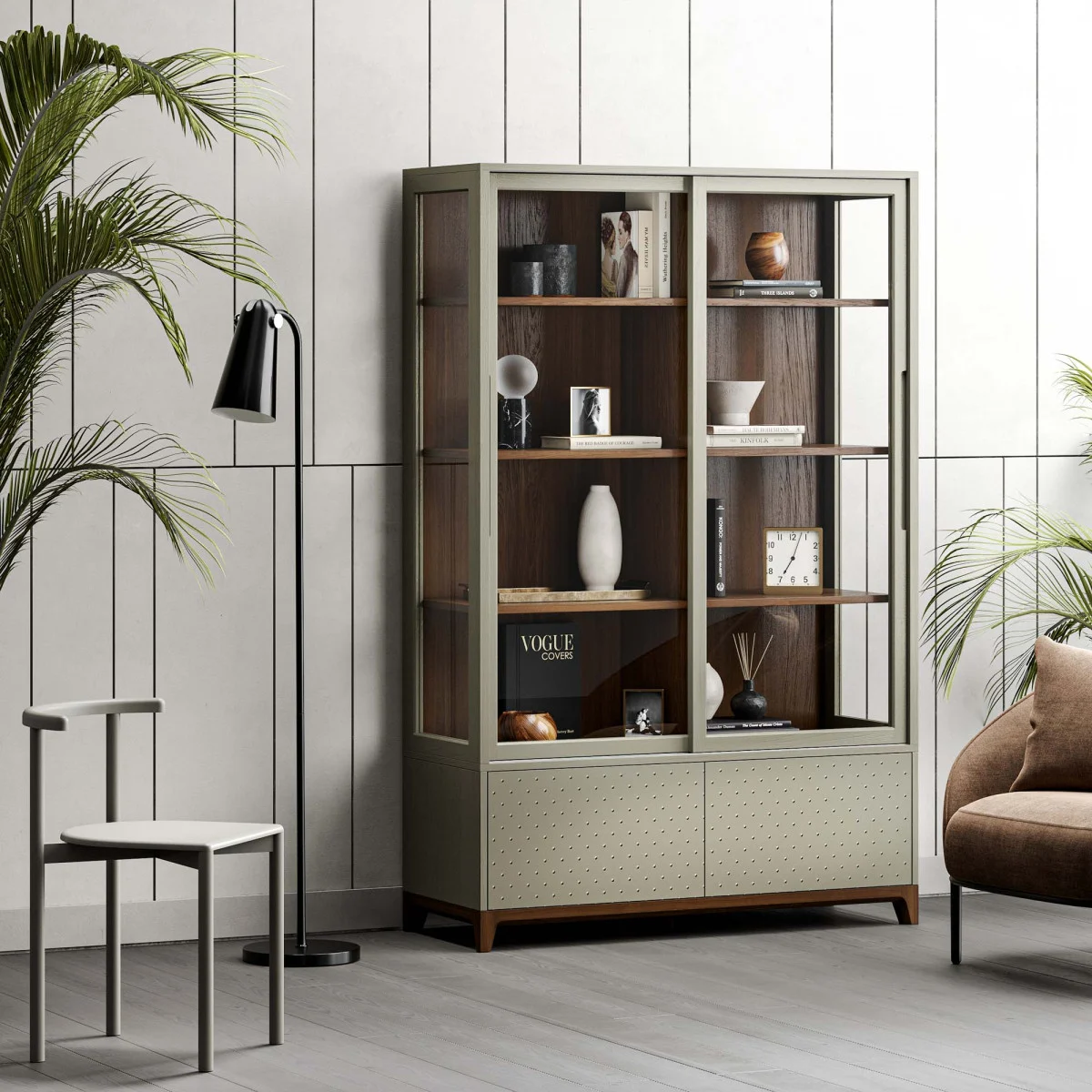 Витрина Case CS159 поможет организовать домашние коллекции, помня о главном — стильном интерьере и комфорте. Если вы устали от однообразия корпусной мебели, то данная витрина добавит новизны и элегантности вашему пространству. Элегантные стеклянные фасады с трех сторон придают легкость конструкции и защищают от пыли хранящиеся в ней предметы. В выдвижных ящиках найдется место для объемных и весомых вещей, а на полках — для праздничного декора, бокалов и книг.