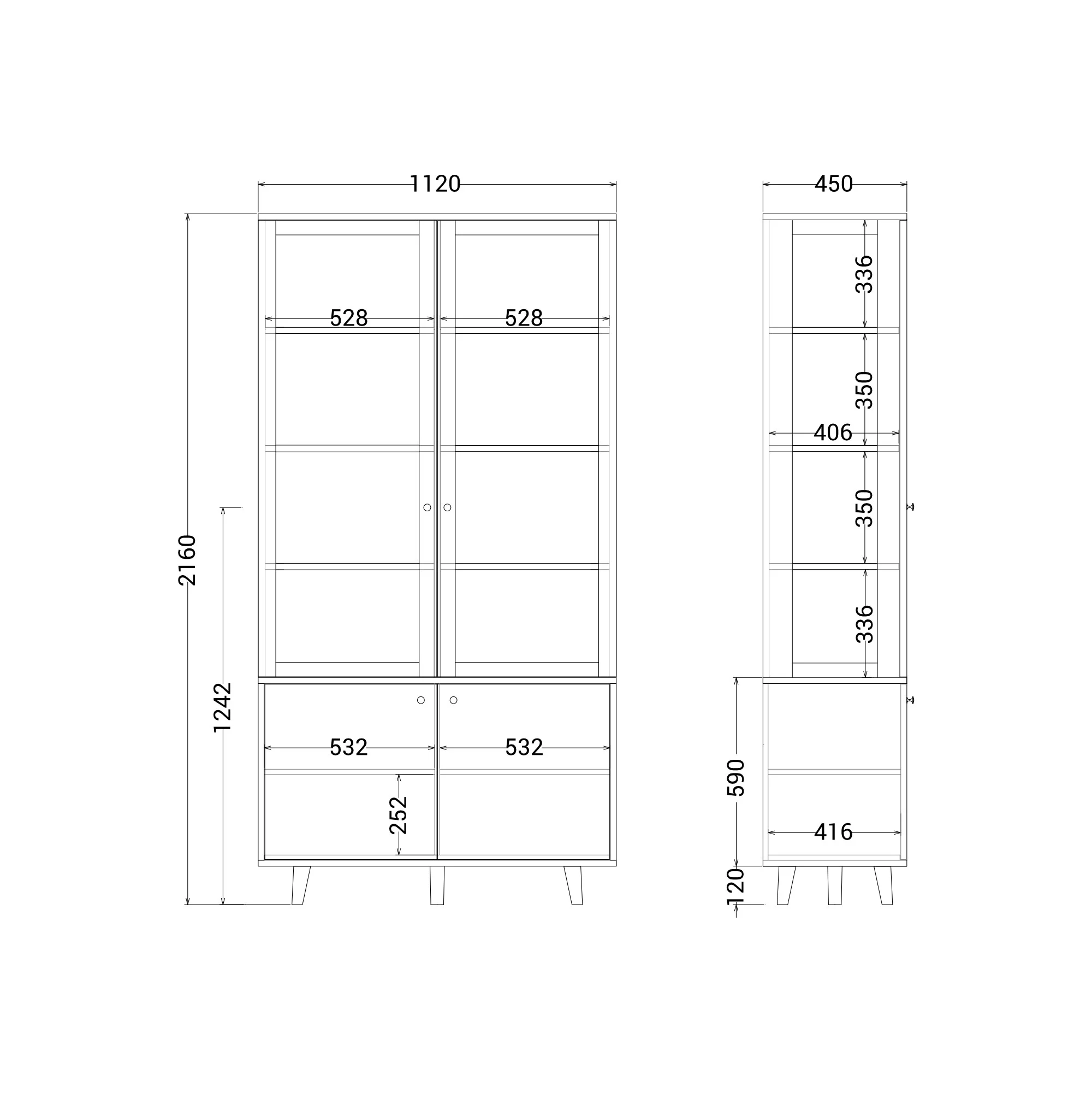 — Полки верхней секции из МДФ, покрыты натуральным шпоном дуба и выдерживают нагрузку до 30 кг;