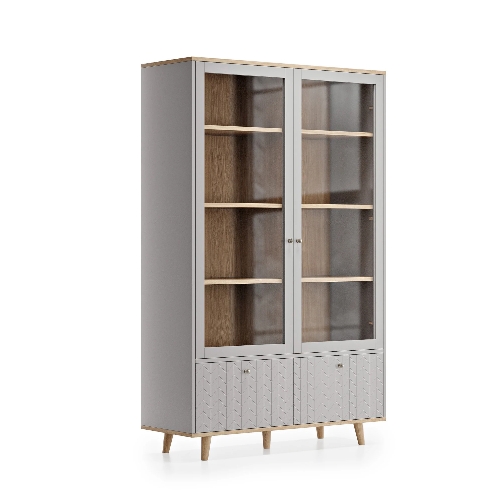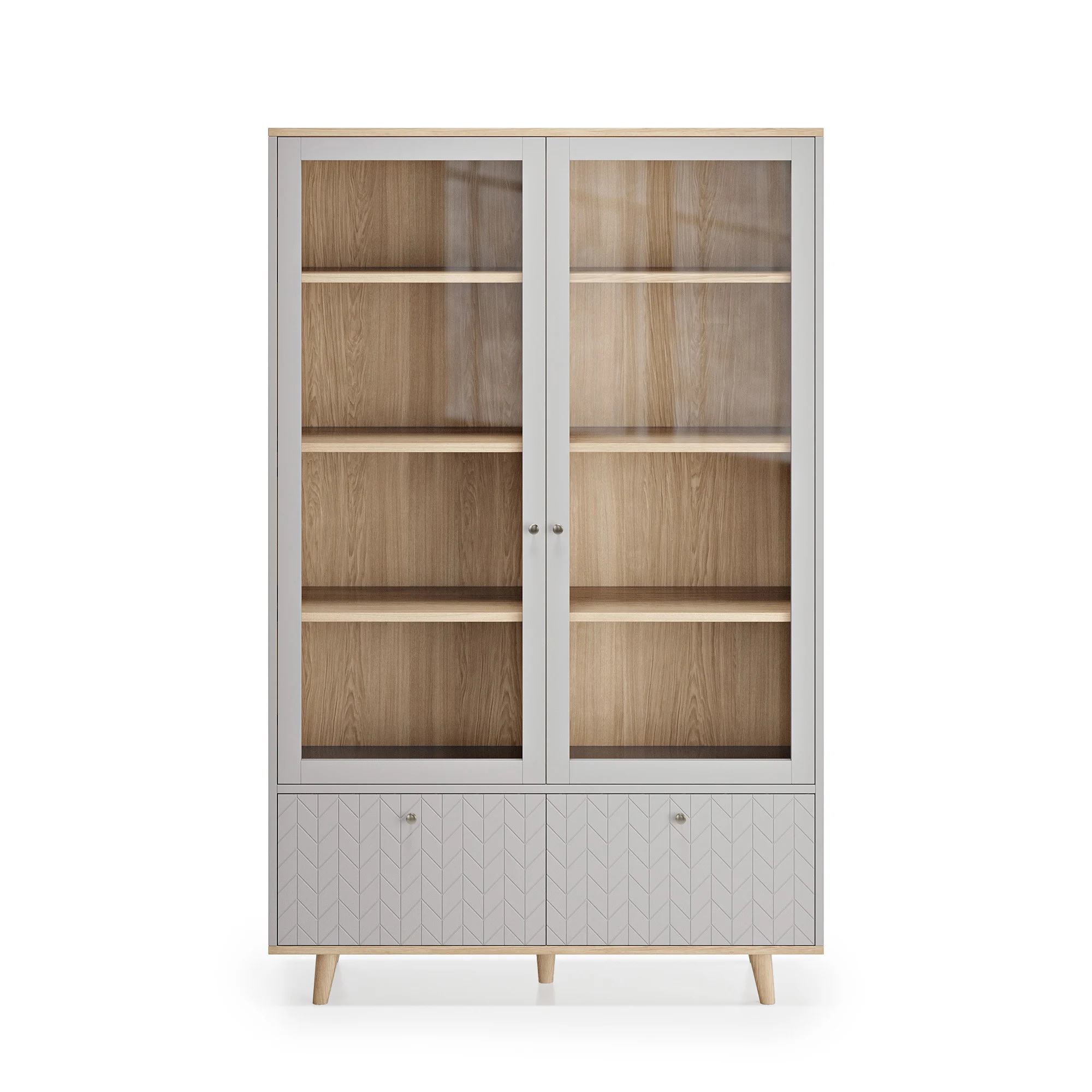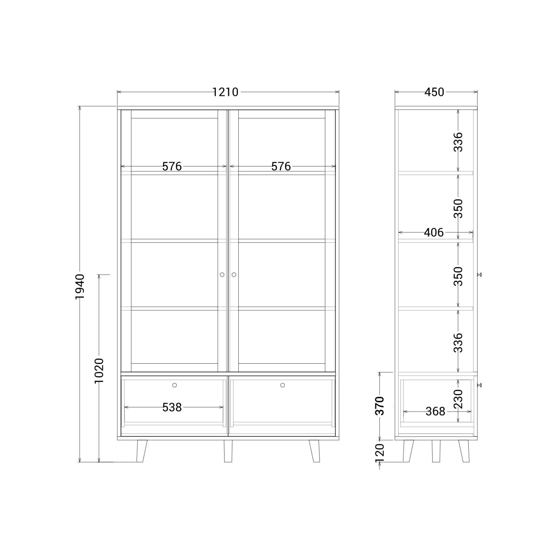 Витрина TWIN с изящными ножками и стеклянными фасадами поможет организовать правильное и комфортное хранение, не забывая о главном — стильном интерьере. Свет, проникая сквозь элегантные стеклянные фасады витрины, выгодно подчеркивает красоту хранящихся в ней предметов. Витрина имеет восемь вместительных полок и два выдвижных ящика. В ящиках найдется место для более габаритных объемных вещей, а на полках — для декора, посуды и книг.