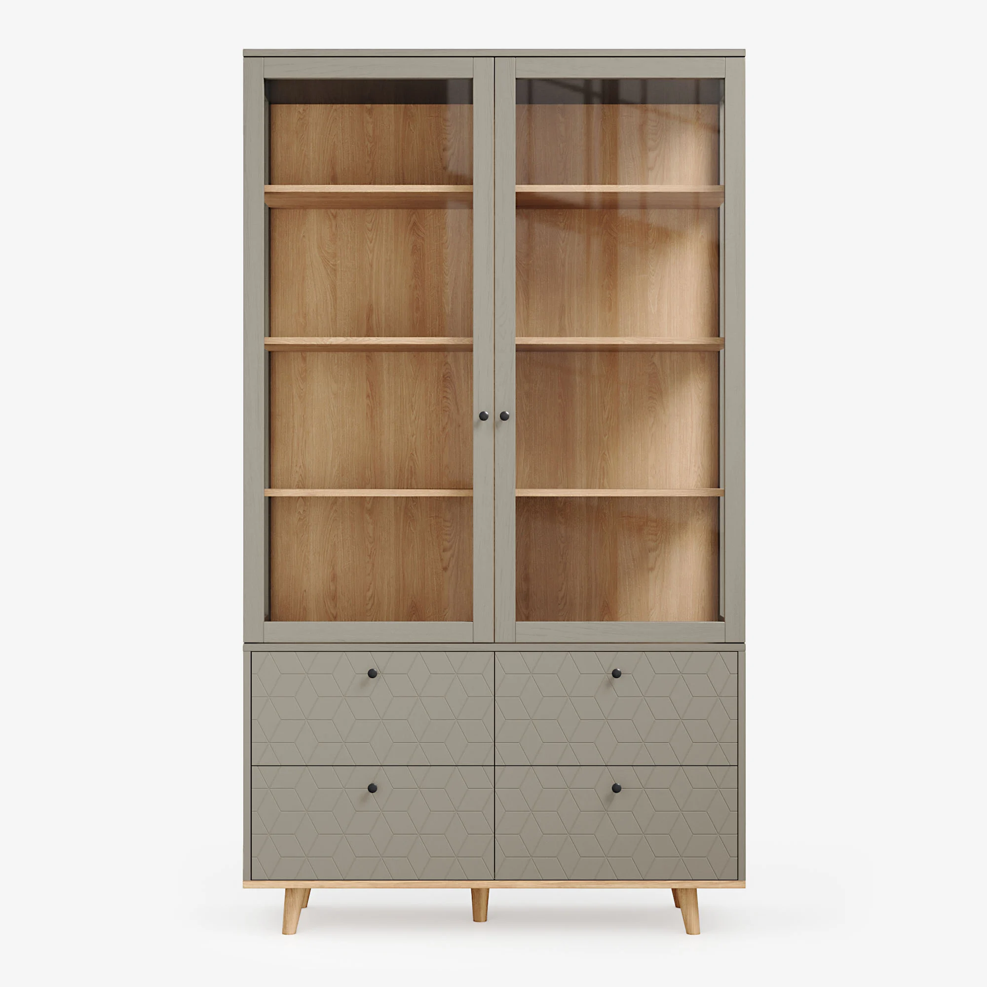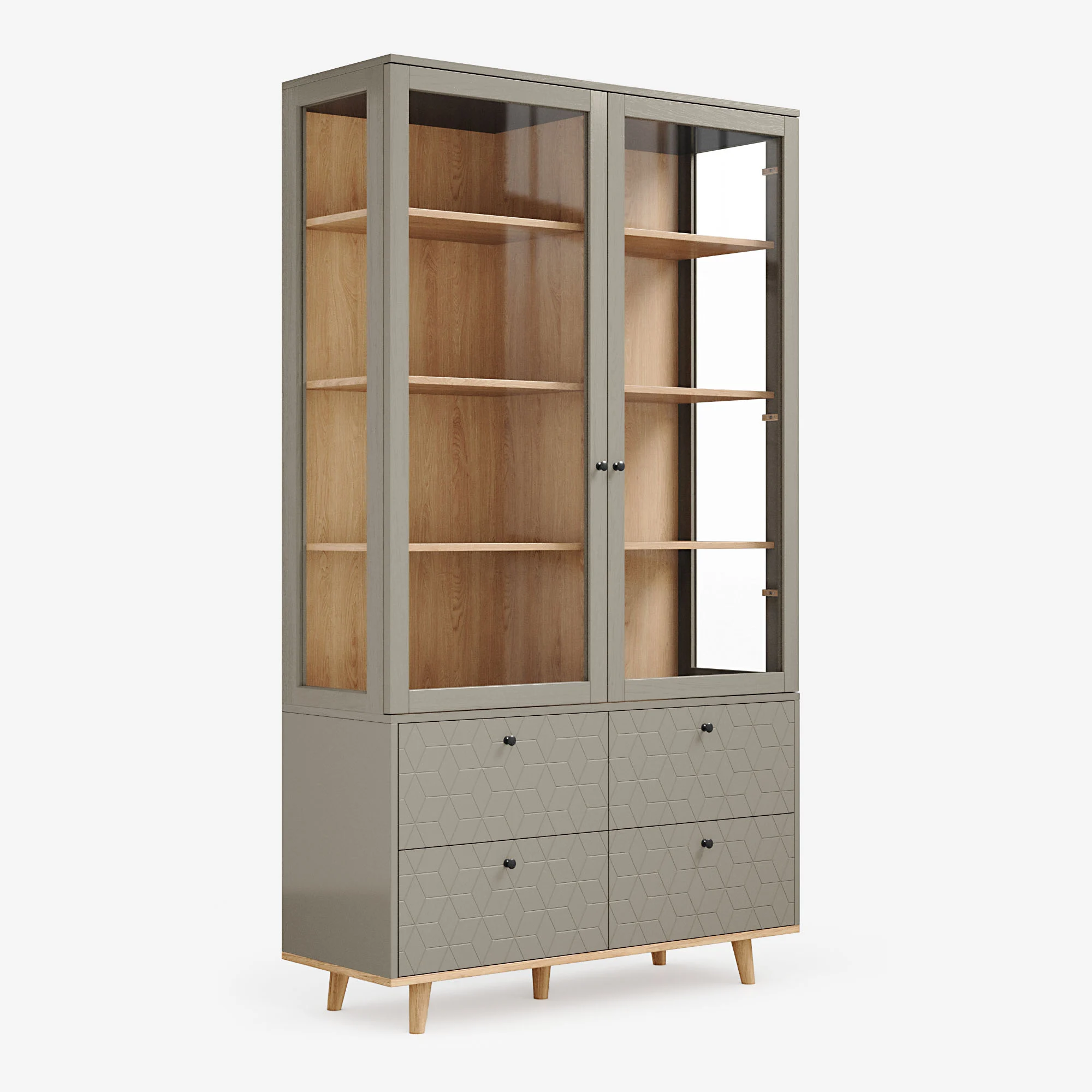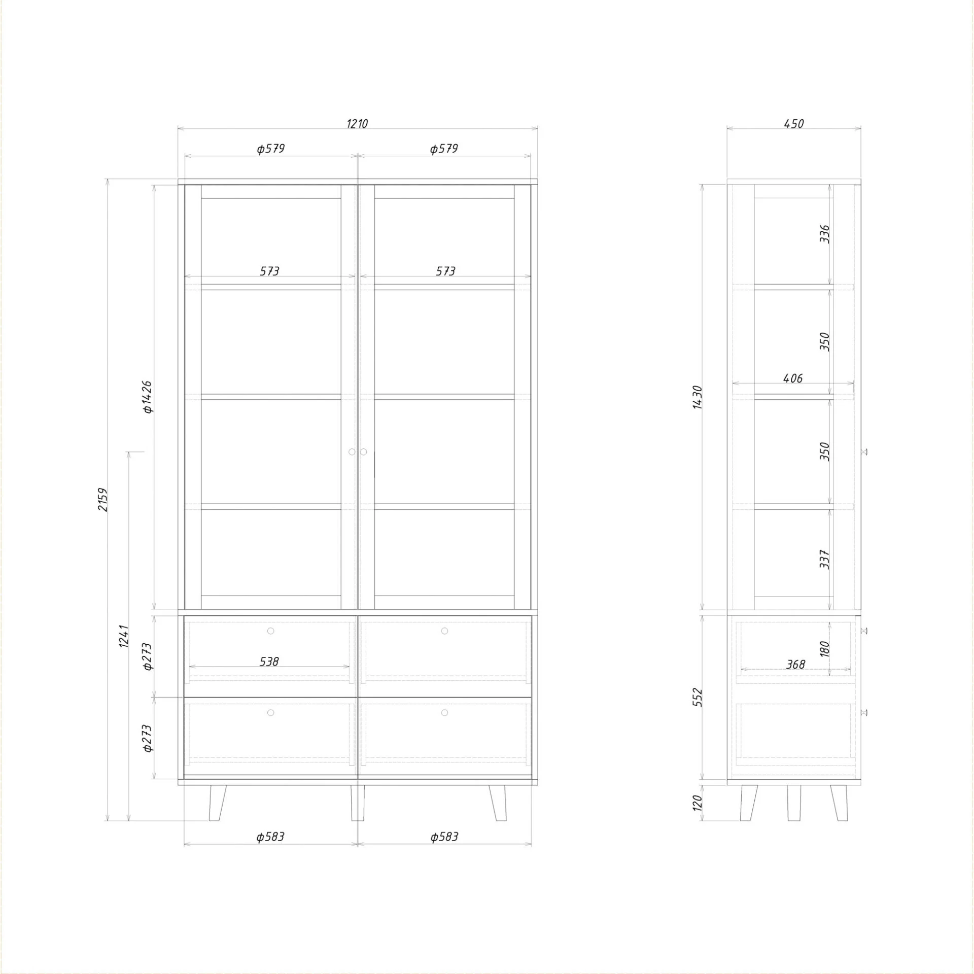 проникая сквозь элегантные стеклянные фасады витрины, выгодно подчеркивает красоту хранящихся в ней предметов. Витрина имеет восемь вместительных полок и четыре выдвижных ящика. В ящиках найдется место для более габаритных объемных вещей, а на полках – для декора, посуды и книг.