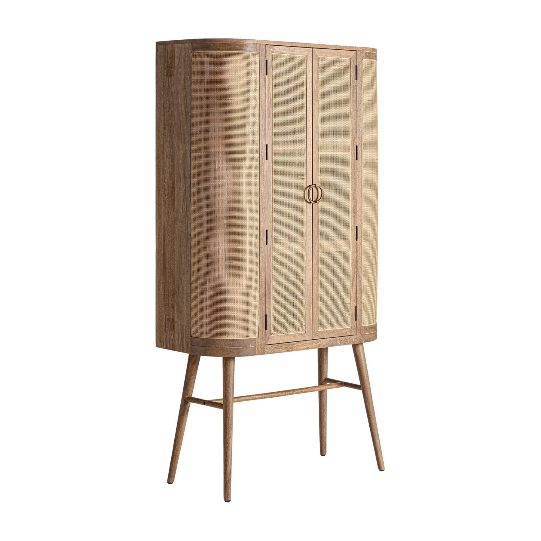 Шкаф Beckley, натуральный цвет, современный стиль. Изготовлен из древесины манго в сочетании с плетением. Съемное изделие.