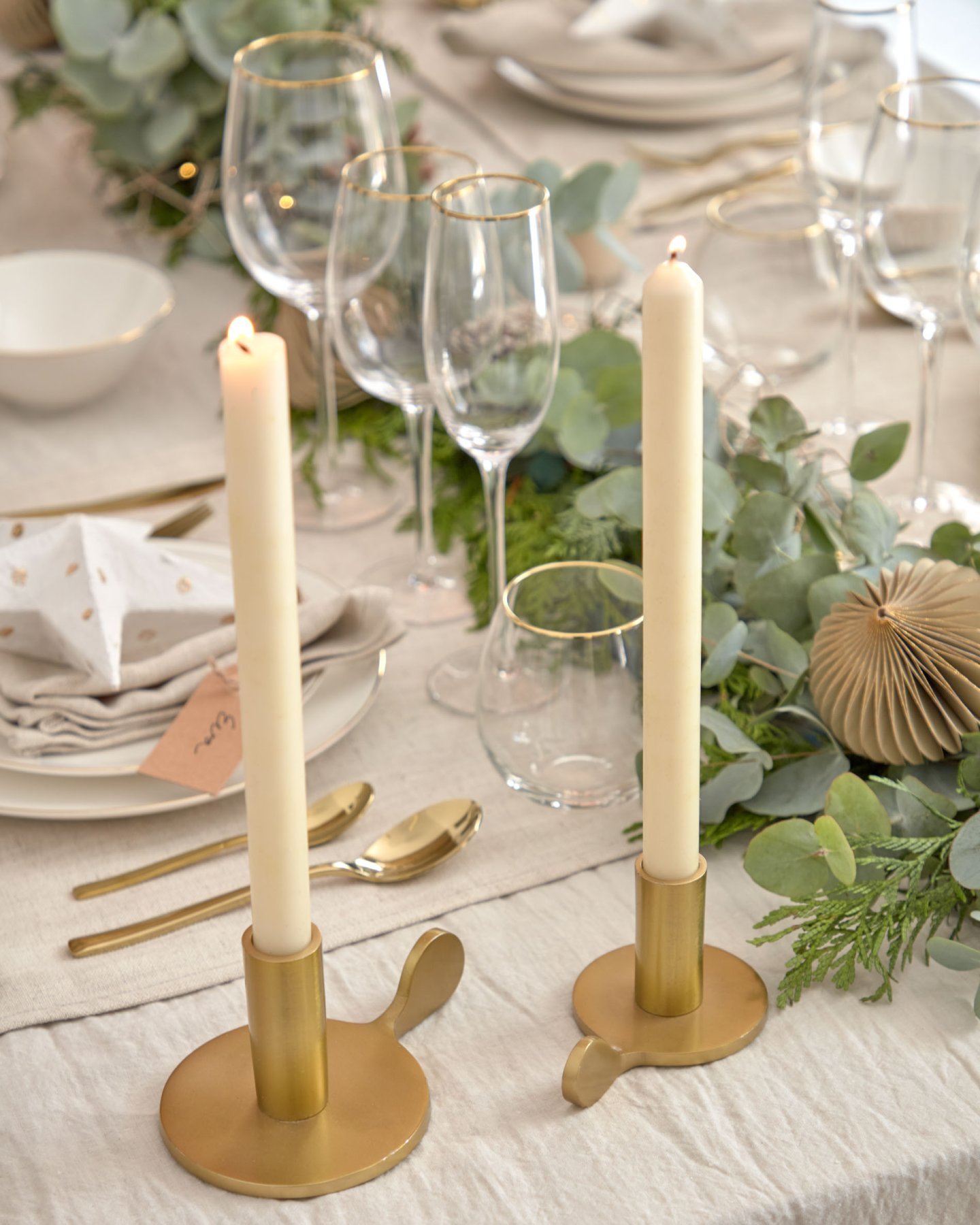 Подсвечники полностью сделаны из алюминия. Металл окрашен в золотой цвет гальванической краской. Технология порошкового нанесения обеспечивает идеальное покрытие, которое усиливает блеск металла.