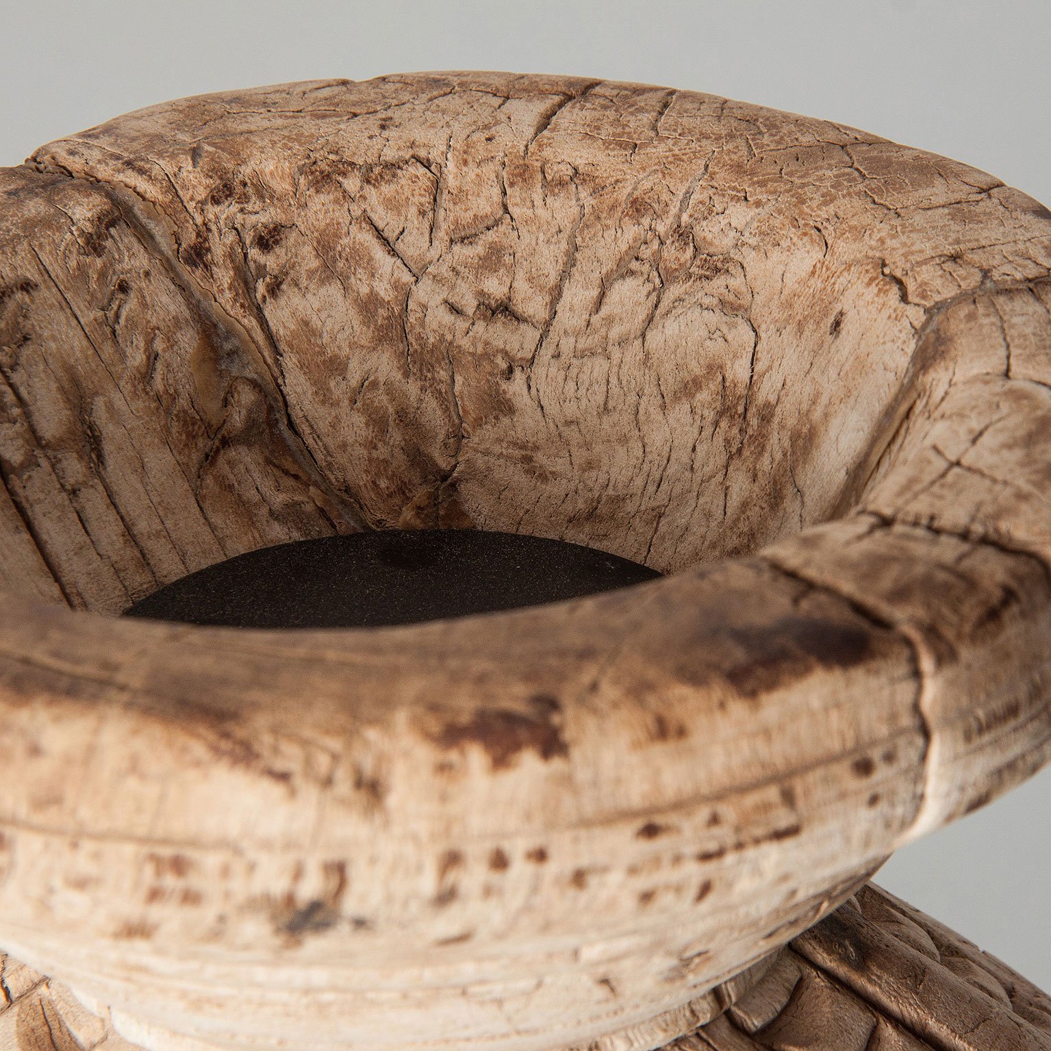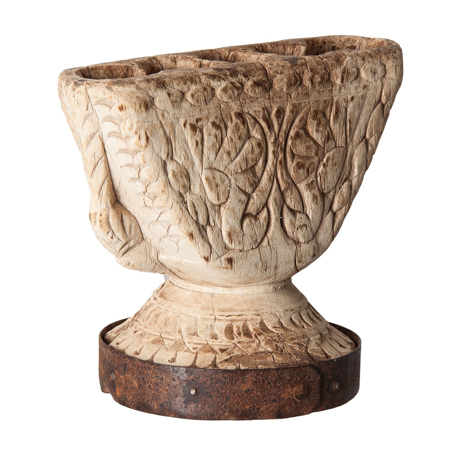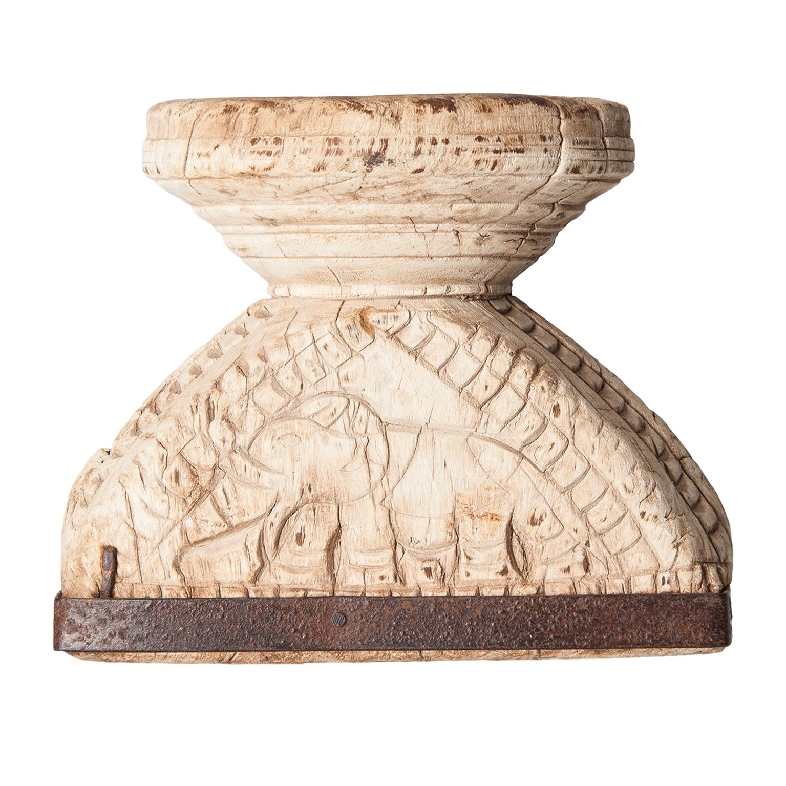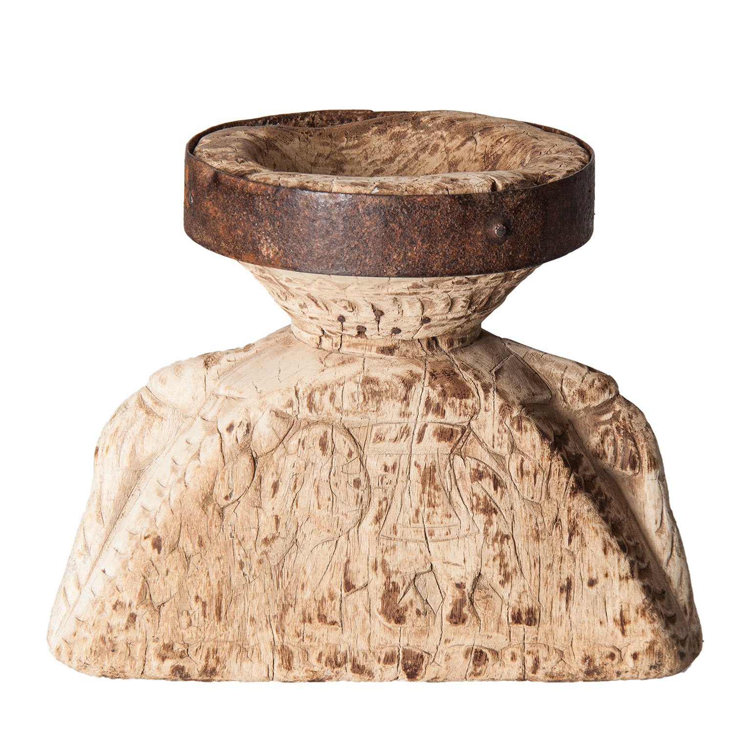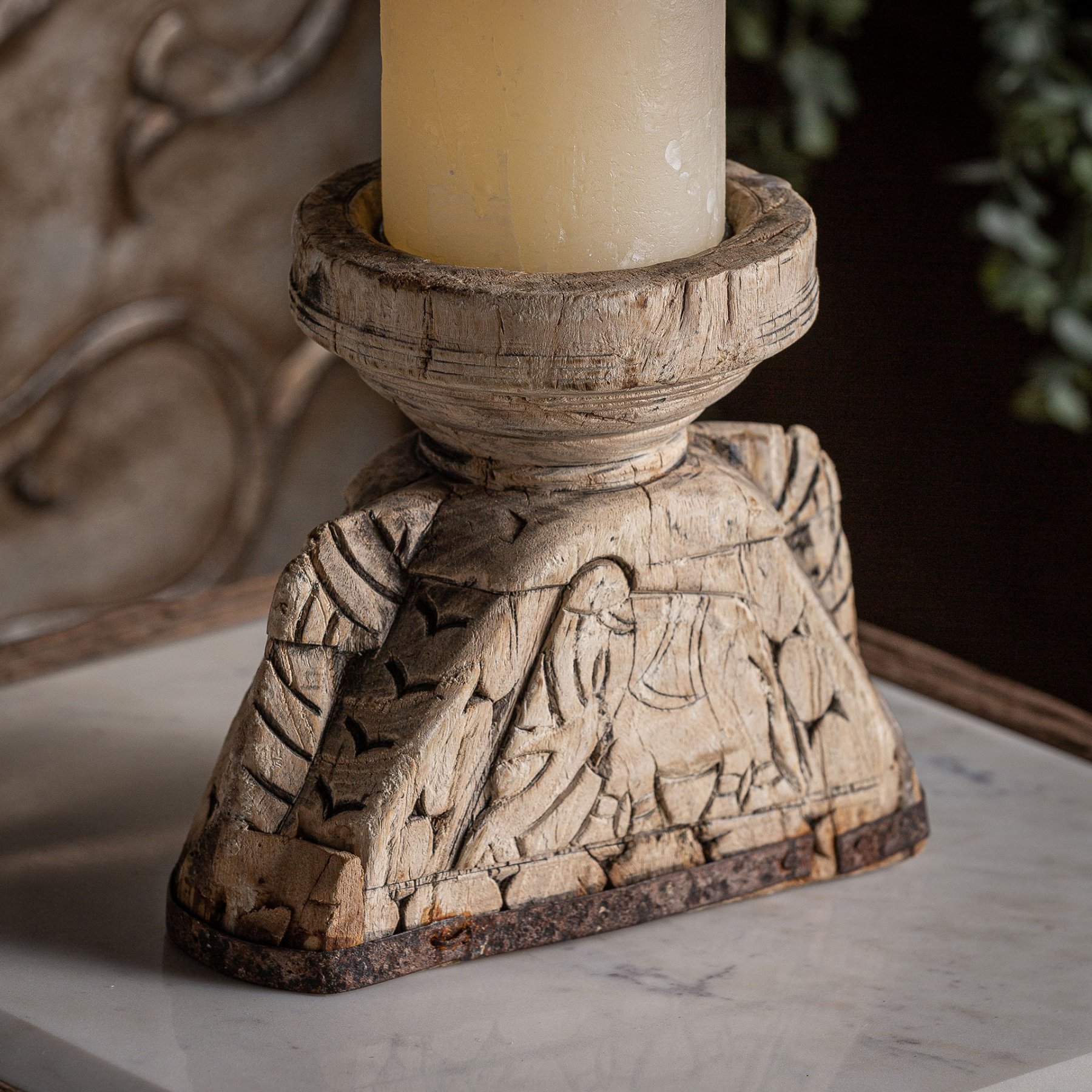 Полукруглый подсвечник, состаренного кремового цвета, в этническом стиле. Изготовлен из тикового дерева в сочетании с железом.