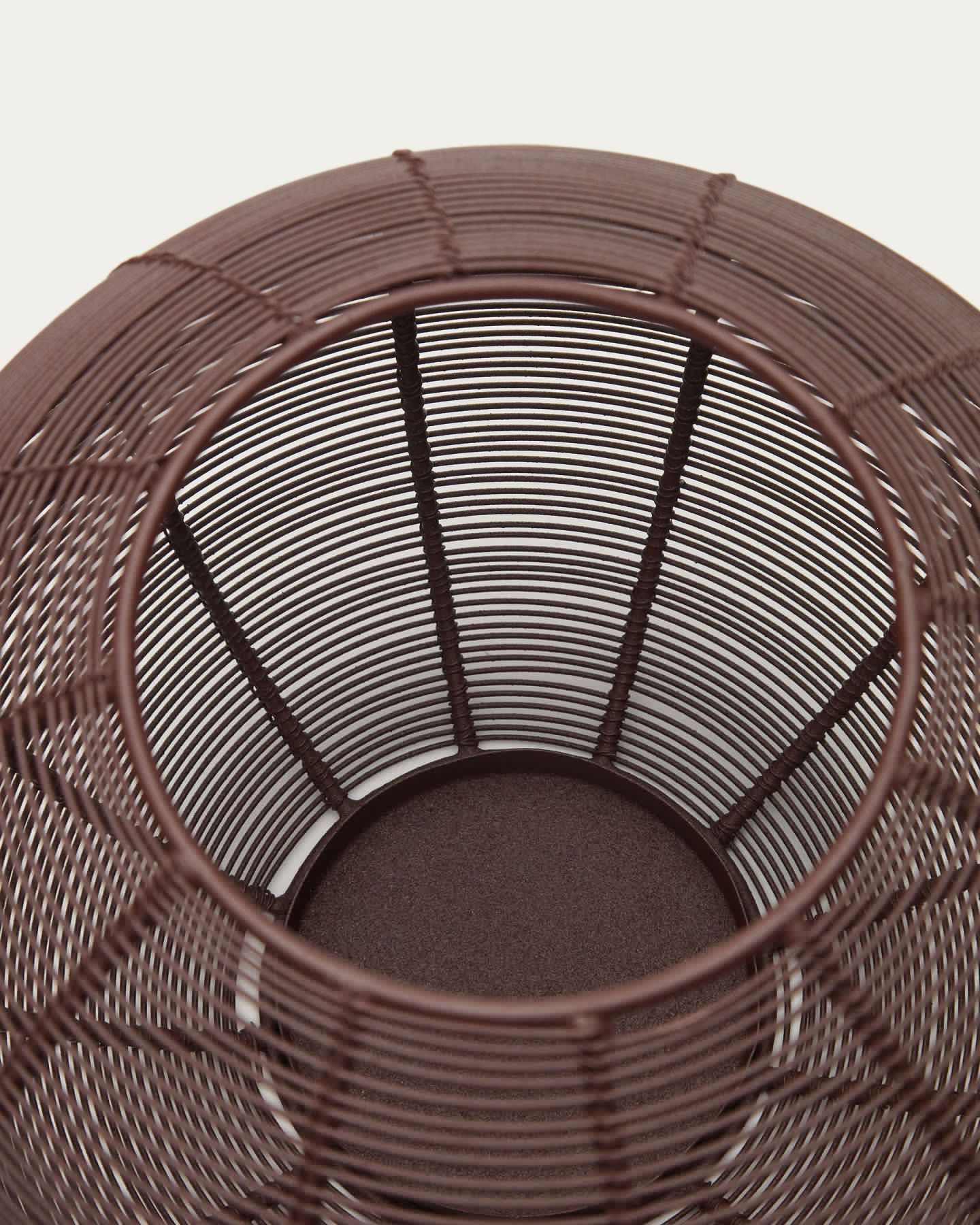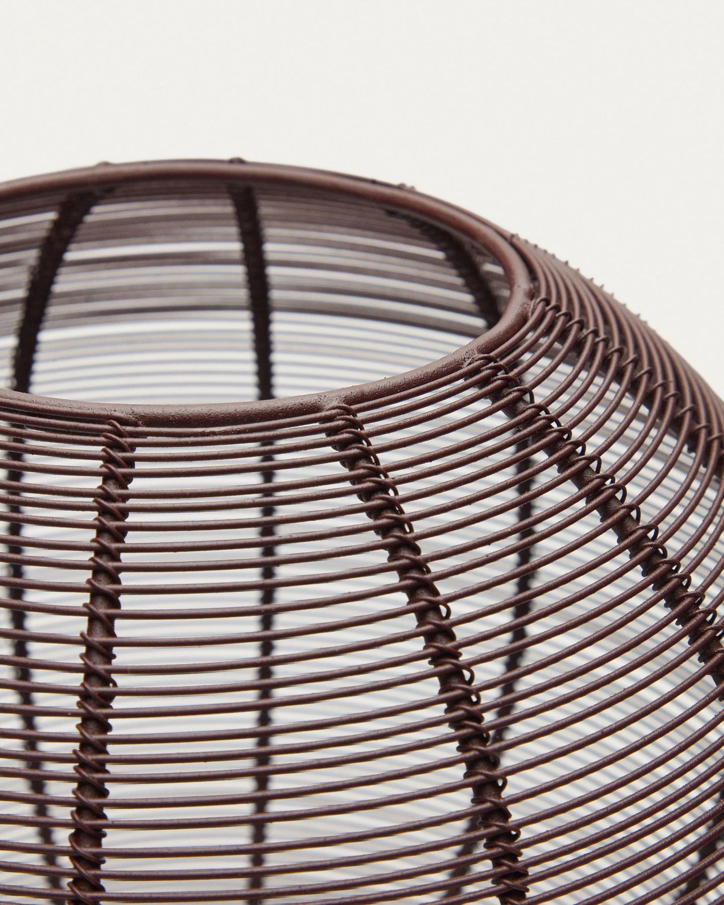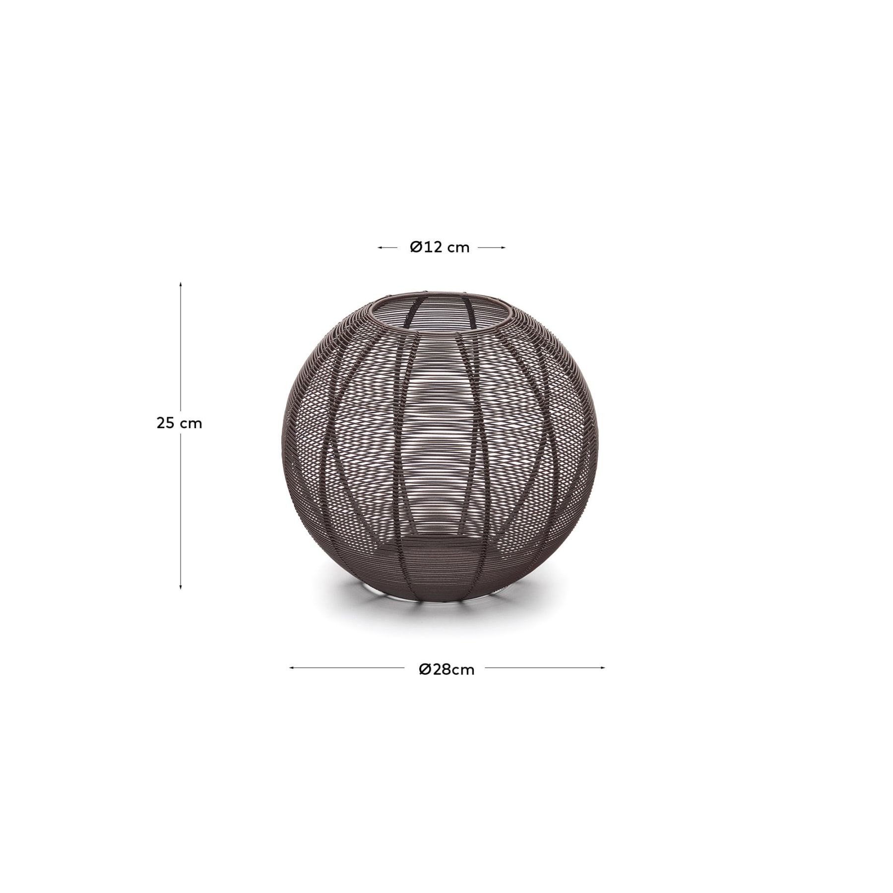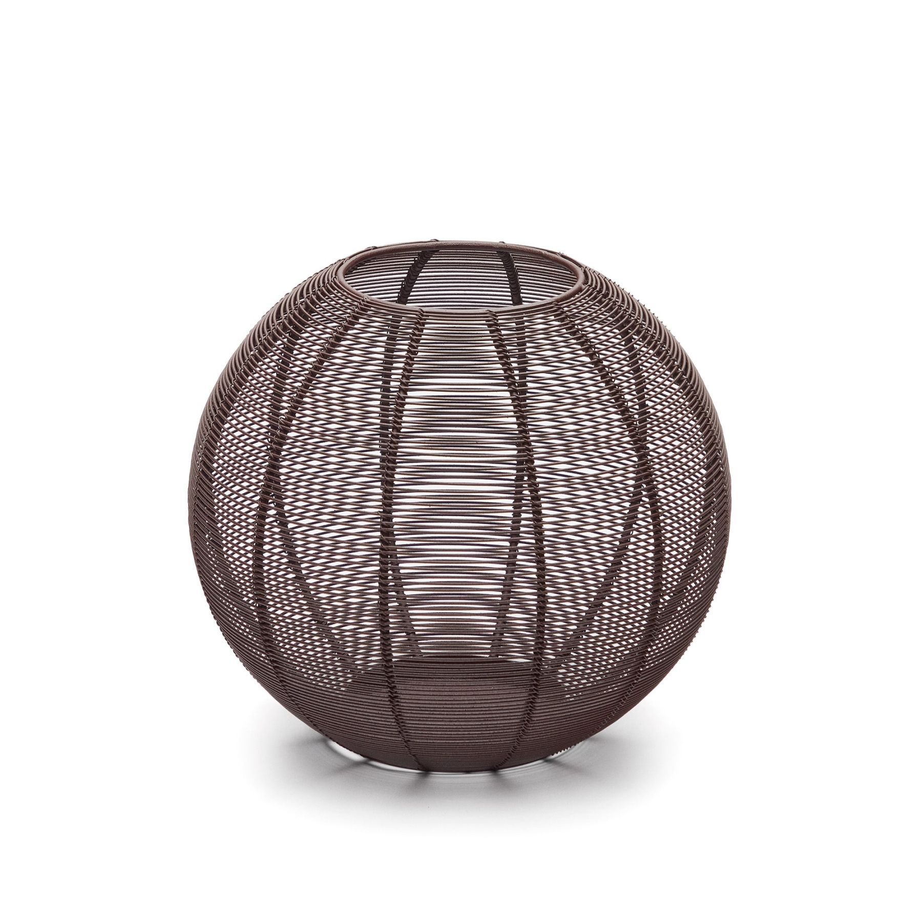 Подсвечник полностью сделан из металла. Проволочная структура образует сферу, внутрь которой помещается свеча.