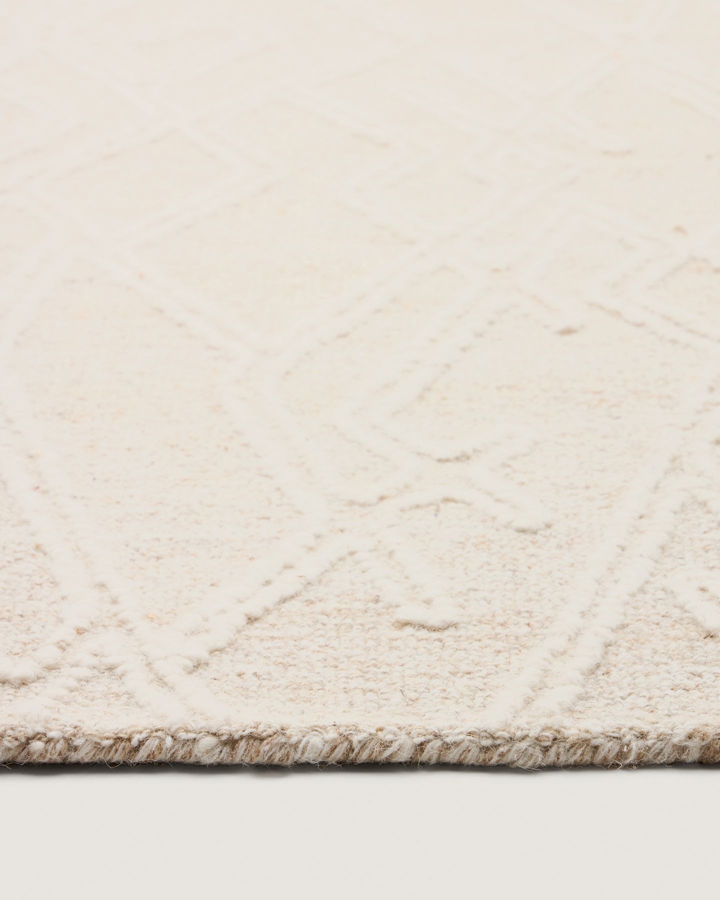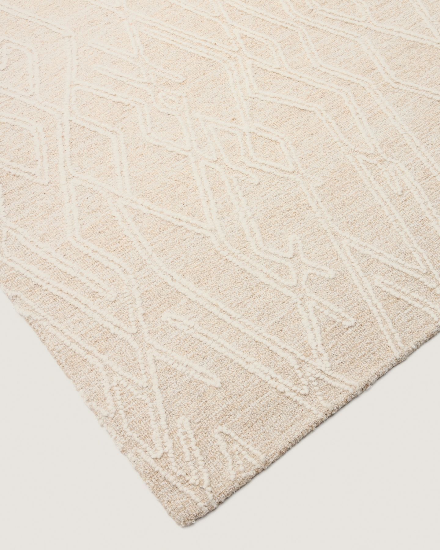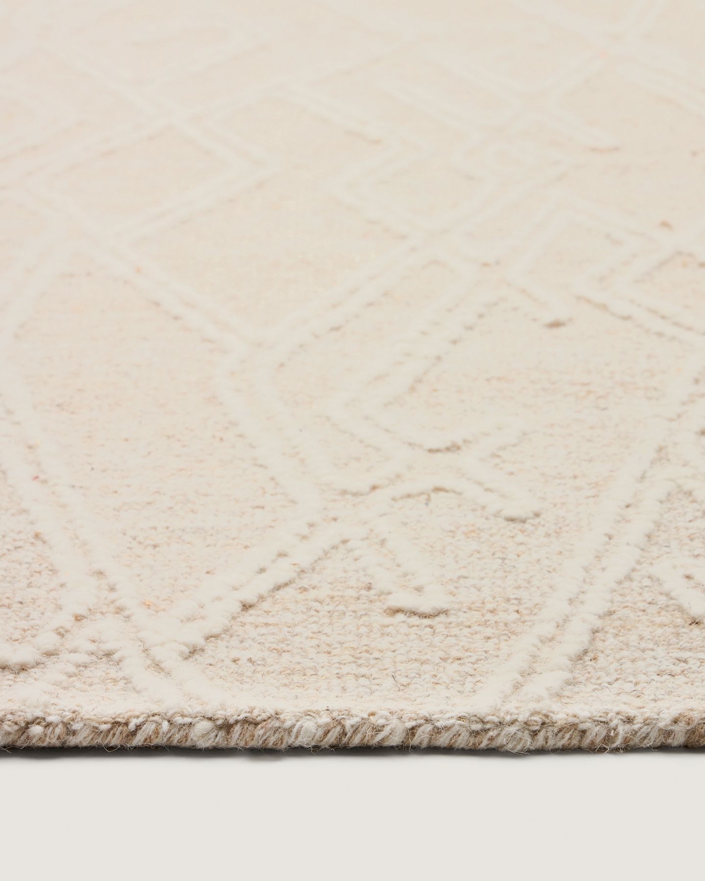 тот ковёр выделяется вышитым эффектом, добавляя текстуру и рельеф, которые преображают любое пространство. Изготовленный из 100% шерсти, он обеспечивает тёплую и мягкую поверхность, идеально подходящую для создания уютной и изысканной обстановки. Каждый ковёр соткан вручную, что делает его эксклюзивным изделием с небольшими отклонениями, характерными для ремесленного процесса. Качество шерсти обеспечивает прочность и долговечность, хотя в течение первых нескольких месяцев он может линять.