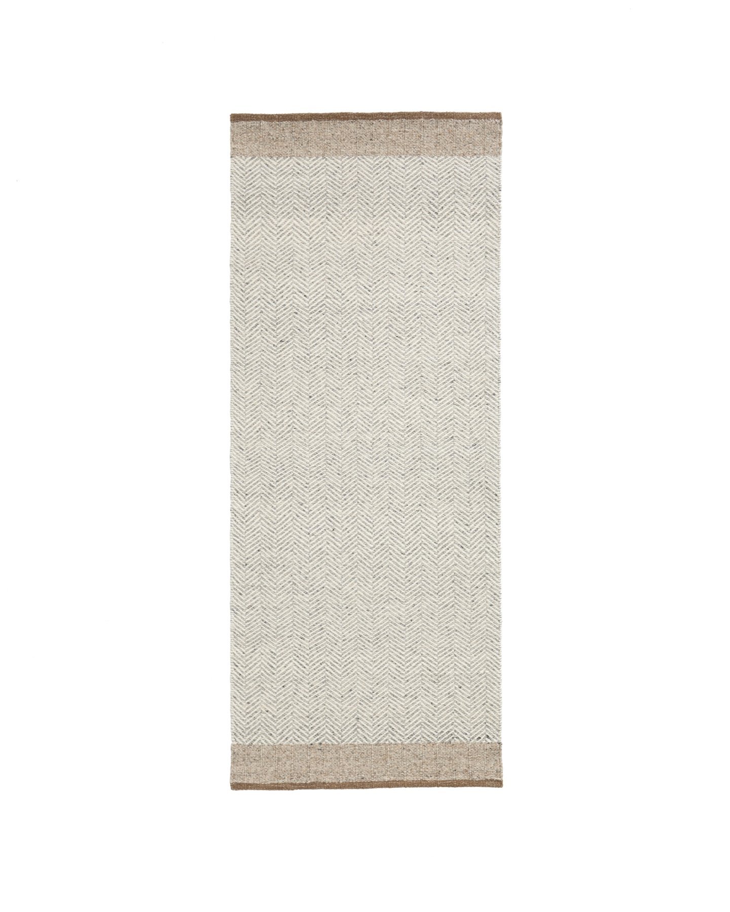 тот ковёр выделяется жаккардовым узором «ёлочка», который добавит динамичности и элегантности любому коридору. Изготовленный из тщательно подобранной шерстяной смеси, он обладает мягкой и тёплой текстурой, идеально подходящей для комфорта ног, а также изысканными бежевыми тонами, которые легко вписываются в интерьеры разных помещений. Каждый ковёр соткан вручную, что обеспечивает эксклюзивную отделку ручной работы, а небольшие вариации подчёркивают его аутентичность.