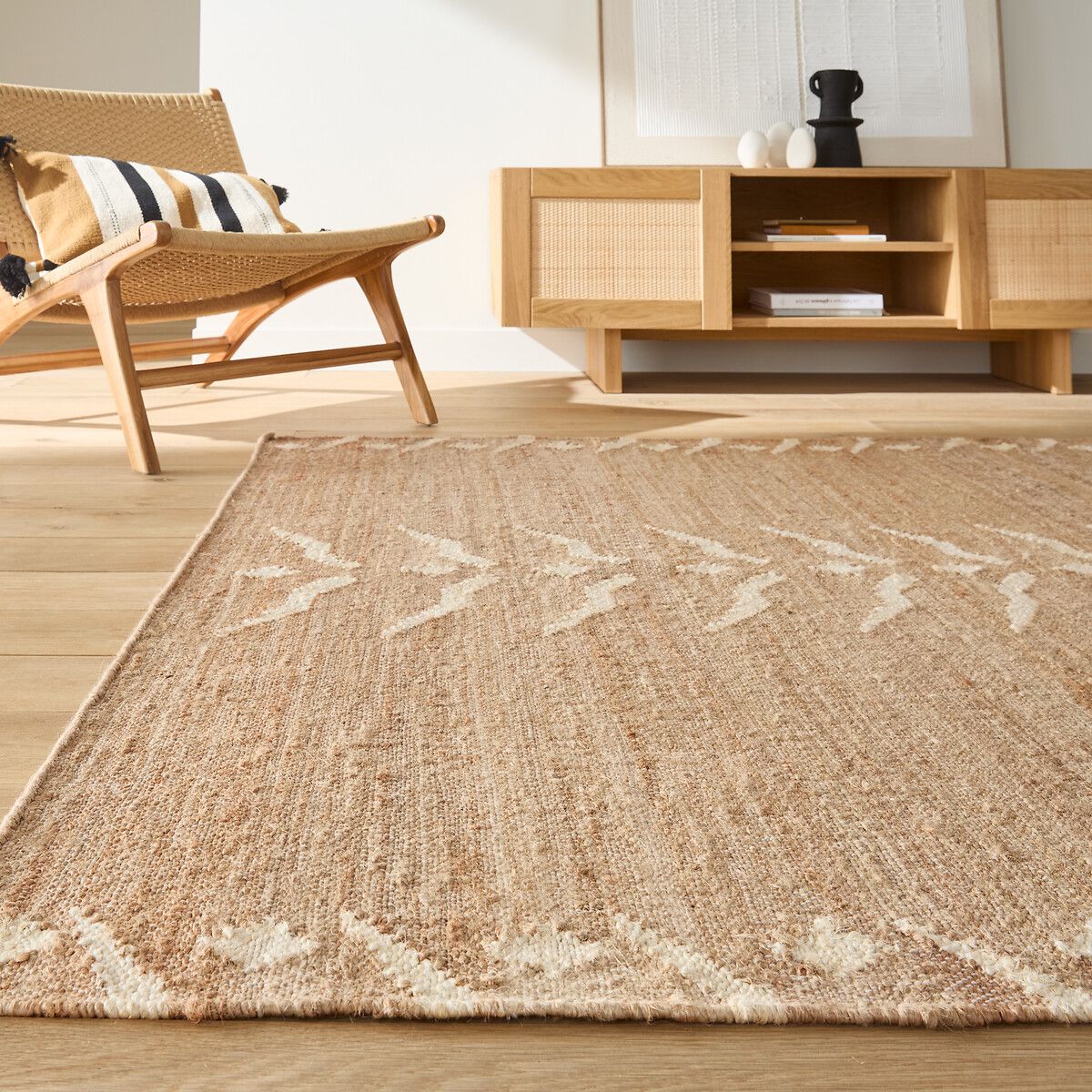 Растительное волокно, ручная работа, оригинальный дизайн. Узор ковра SORRUS напоминает полоски шкуры тигра. Он внесет в ваш дом богемную нотку. Творение наших дизайнеров из La Redoute Intérieurs.Описание — 100% джут — 1500 г/м2 — Толщина: 1 см — Горизонтальное плетение — Способ производства: ручная работа — Совместим с системой теплого пола: да — Использование в помещении: да — Использование на улице: нетКачество — Каждое изделие сплетено вручную и имеет неповторимый вид. Небольшая разница в цвете и размерах делает его уникальным и особенным. — Сотканные вручную ковры рекомендуется использовать только в качестве декора.Рекомендации по использованию — После вскрытия упаковки ковер в течение некоторого времени может сохранять элементы деформации из-за долгого нахождения в скрученном виде, но уже через 1–2 недели он полностью выпрямится. — Чтобы расправить края, сверните ковер обратной стороной внутрь. Оставьте ковер на час в таком положении, затем разверните и на два дня положите на него сверху тяжелый предмет. — У новых ковров может присутствовать естественный запах. Он абсолютно безопасен и при частом проветривании быстро исчезает. — Чтобы ковер меньше изнашивался и выцветал, раз в полгода его следует поворачивать на 180° для равномерного распределения нагрузки.Уход — Регулярная чистка пылесосом — Чистка роботом-пылесосом: нет — Чтобы убрать пятно, немедленно промокните ковер впитывающей тканью или влажной тряпочкой при необходимости. Если вы не уверены, что справитесь с пятном самостоятельно, отвезите ковер в химчистку или вызовите мастера по чистке ковров на дом.Размеры — Ширина 120 x длина 170 см — Ширина 160 x длина 230 см — Ширина 200 x длина 290 см — ВОЛОКНО, ЭКОНОМЯЩЕЕ ВОДУ. Джут — материал, не требующий обильного полива и использования большого количества химических средств при выращивании. — OEKO-TEX® Standard 100. Standard 100 от OEKO-TEX® — это единая во всем мире система испытаний и сертификации текстиля, основанная на оценке его влияния на здоровье человека. Сертификат OEKO-TEX® Standard 100 гарантирует, что в текстильном изделии отсутствуют вредные и опасные для человека вещества.