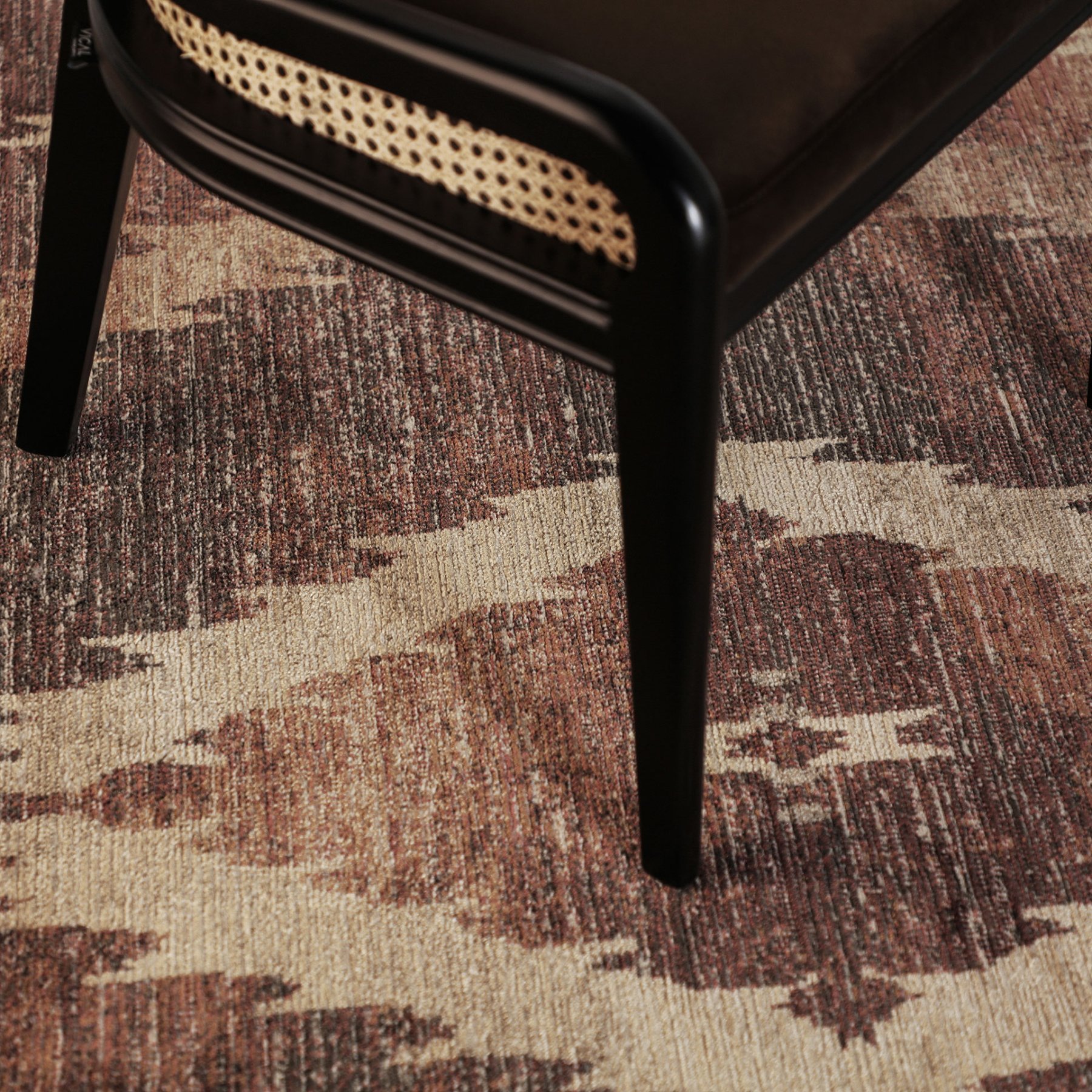 Агатовый ковер, коричневые тона, колониальный стиль. Изготовлен из вискозы в сочетании с полиэстером.