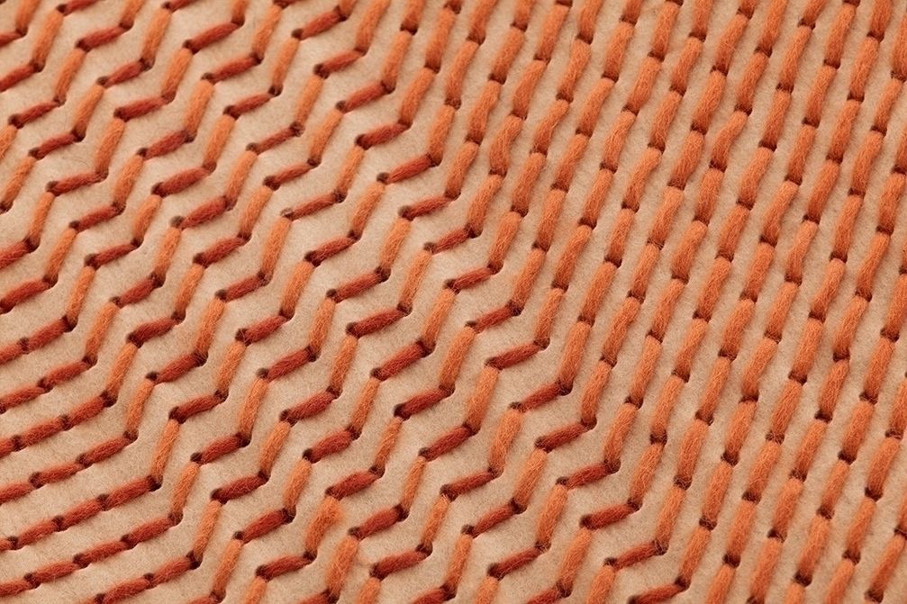 Ковер, выполненный из 100% шерсти с помощью вышивки крестиком на основе из перфорированного войлока.
