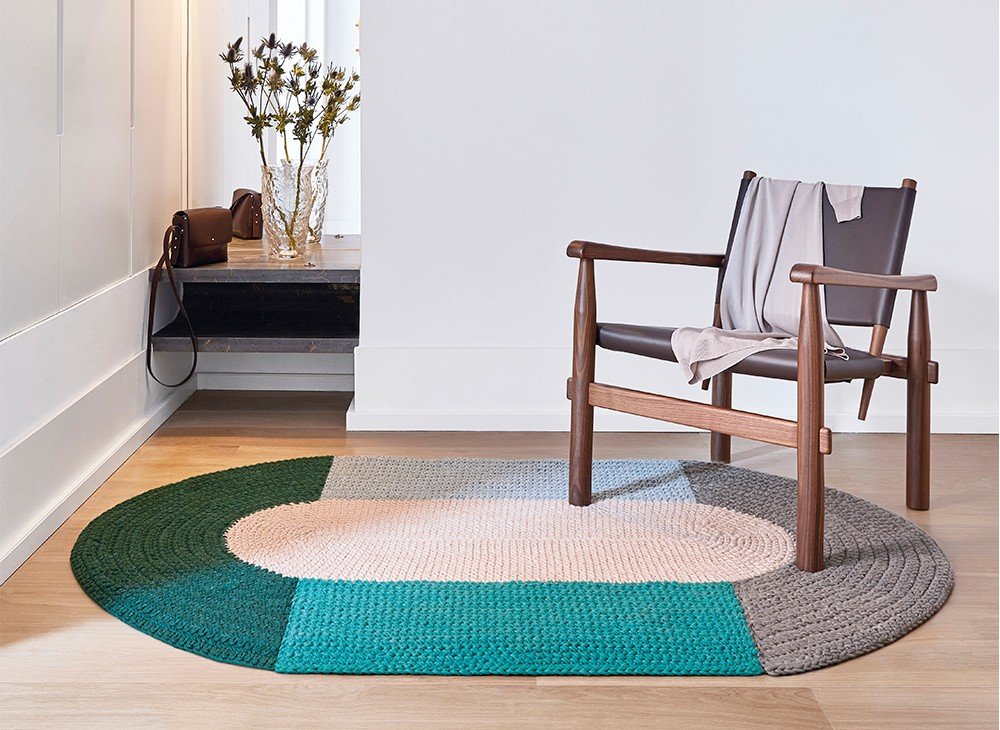 Вязаный коврик Crochet Mono Pink создан по мотивам вязаных салфеток. Разработанный компанией GAN и ее дизайнером Кларой фон Цвайгбергк метод его изготовления пропорционально воспроизводит структуру этих традиционных вышивок в большем масштабе, идеально подходящих в качестве коврика. Он изготовлен из толстых, слегка войлочных шерстяных нитей, связанных вручную специальными, такими же толстыми крючками.