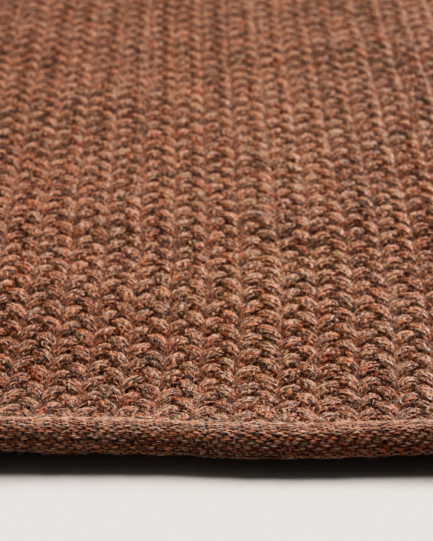 Этот ковёр ручной работы отличается уникальностью каждого изделия, что является результатом кропотливой работы. Синтетические волокна, используемые в его изготовлении, обладают превосходной устойчивостью к ежедневному использованию и воздействию уличных температур, что делает его универсальным и долговечным выбором для любой комнаты в доме или на террасе. Кроме того, этот материал облегчает чистку и уход, помогая ковру сохранять безупречный вид в течение долгого времени.