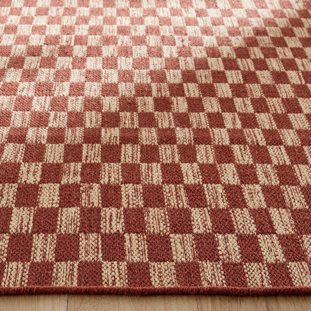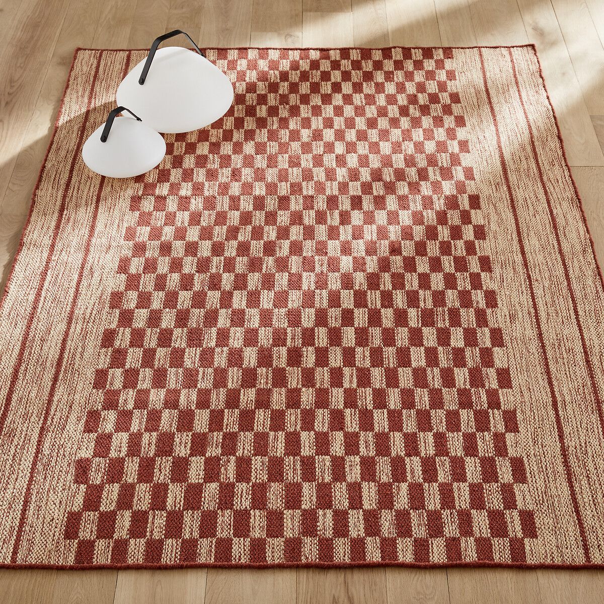 Ковер с рисунком в клетку натурального цвета и цвета керамики можно использовать дома в гостиной или на улице для украшения террасы. Двусторонний ковер, стойкий к УФ-лучам и сырости.