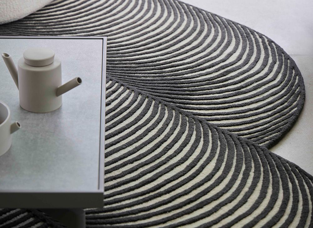 Дизайн GIRO основан на последовательности математических кривых, которые, благодаря небольшому изменению их формы, создают оптическую иллюзию свернутой трубки. извилистые текстуры и рельефы lts создают подвижные дизайны, придающие им игривый оттенок. Ковры GIRO изготавливаются вручную из натуральной шерсти с использованием техники ручного тафтинга.