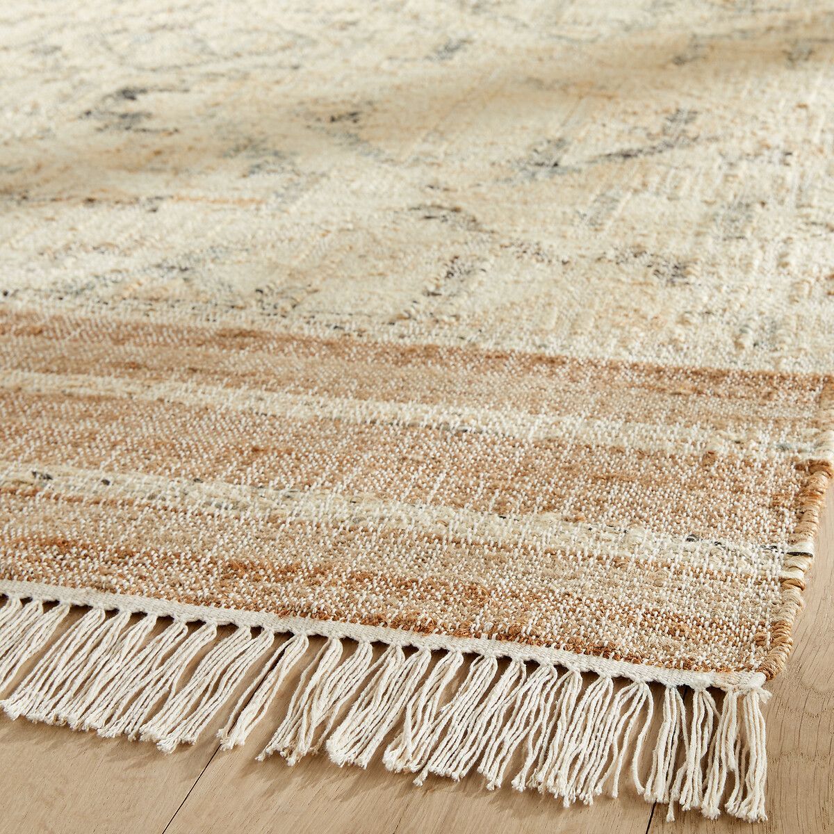 Аутентичный и экологичный по своей натуре ковер благодаря джуту, натуральному волокну из джута, долговечному и прочному, с графическим и этническим рисунком в берберском стиле. Ручное плетение джута и хлопка обеспечивают структурный материал, необработанный и изысканный, естественных и серых оттенков с легким эффектом старения и полосами по бокам. Настоящий элемент декора, отличная термо— и звукоизоляция. Ковер создает атмосферу, структурирует пространство и обеспечивает комфорт. Высококачественные ковры AMPM изготовлены вручную. Этот ковер — изделие ремесленного производства, а его рисунок может слегка отличаться.