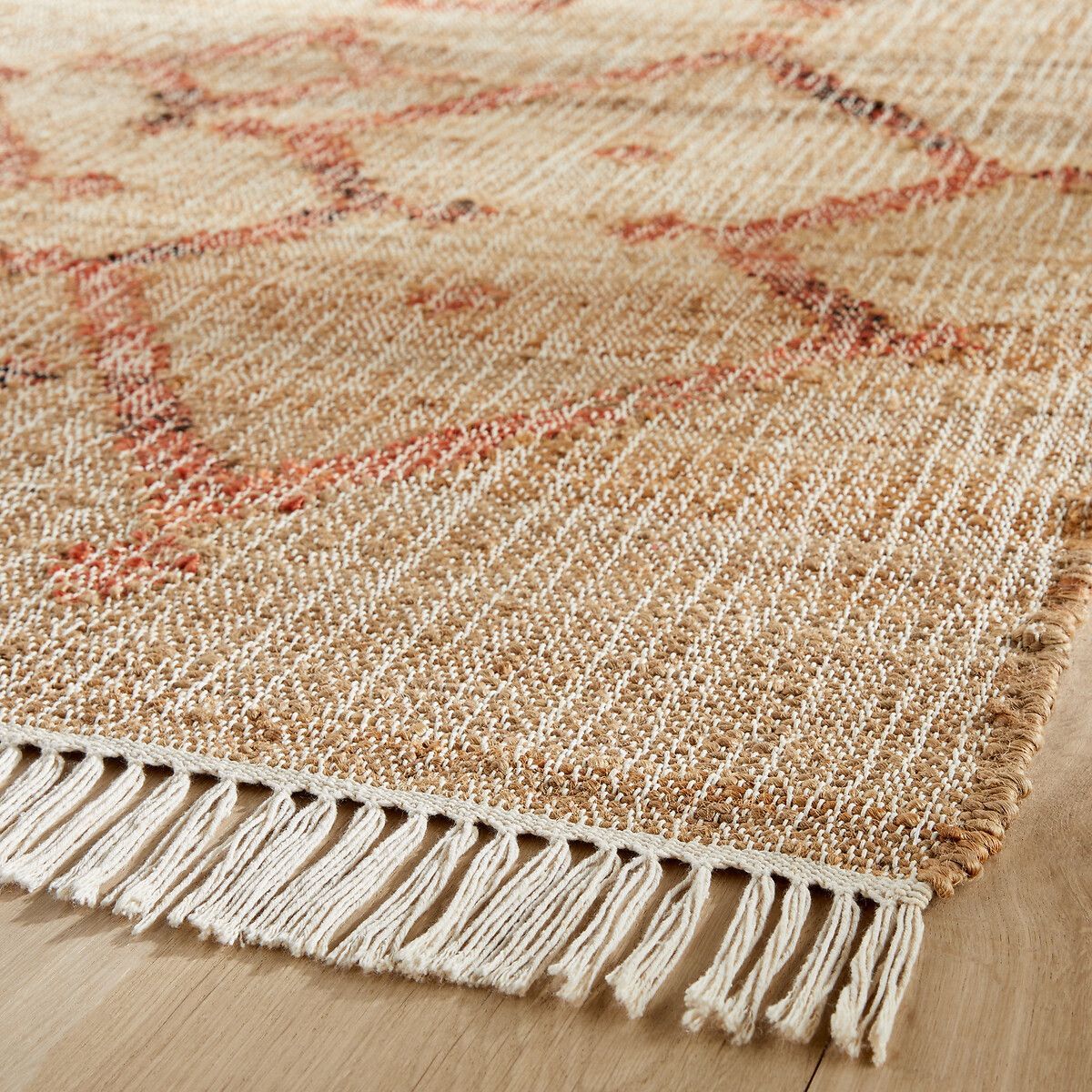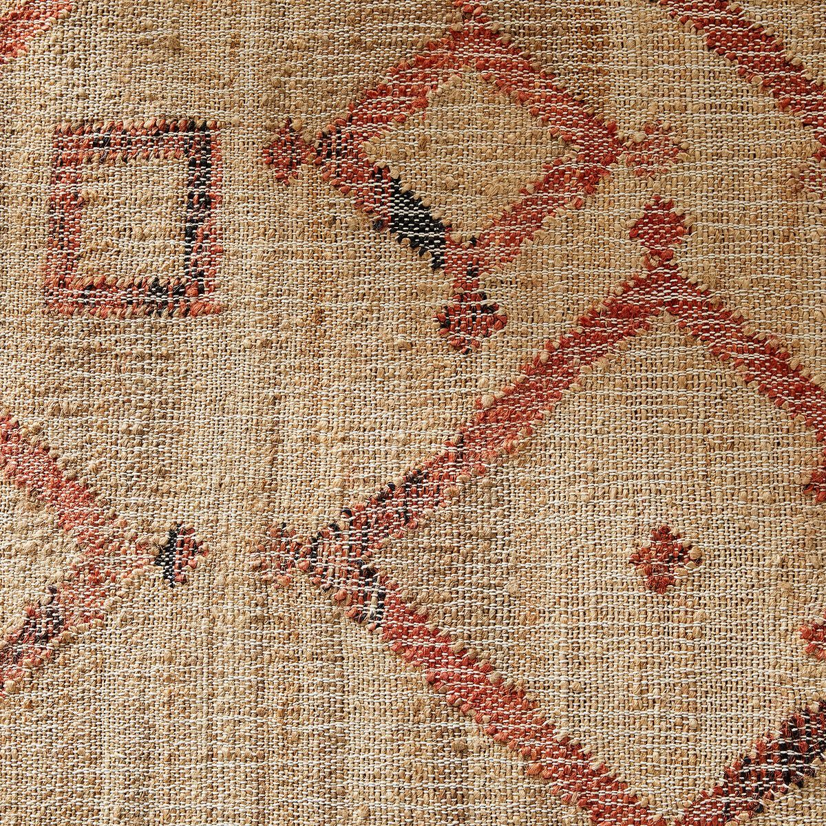 Этот аутентичный и экологичный ковер выполнен из джута, очень прочного и натурального волокна, с графическим и этническим рисунком в берберском стиле терракотового цвета. Ручное плетение из джута и хлопка обеспечивает структурный материал, грубый и утонченный, естественные и терракотовые оттенки с легким потертым эффектом.