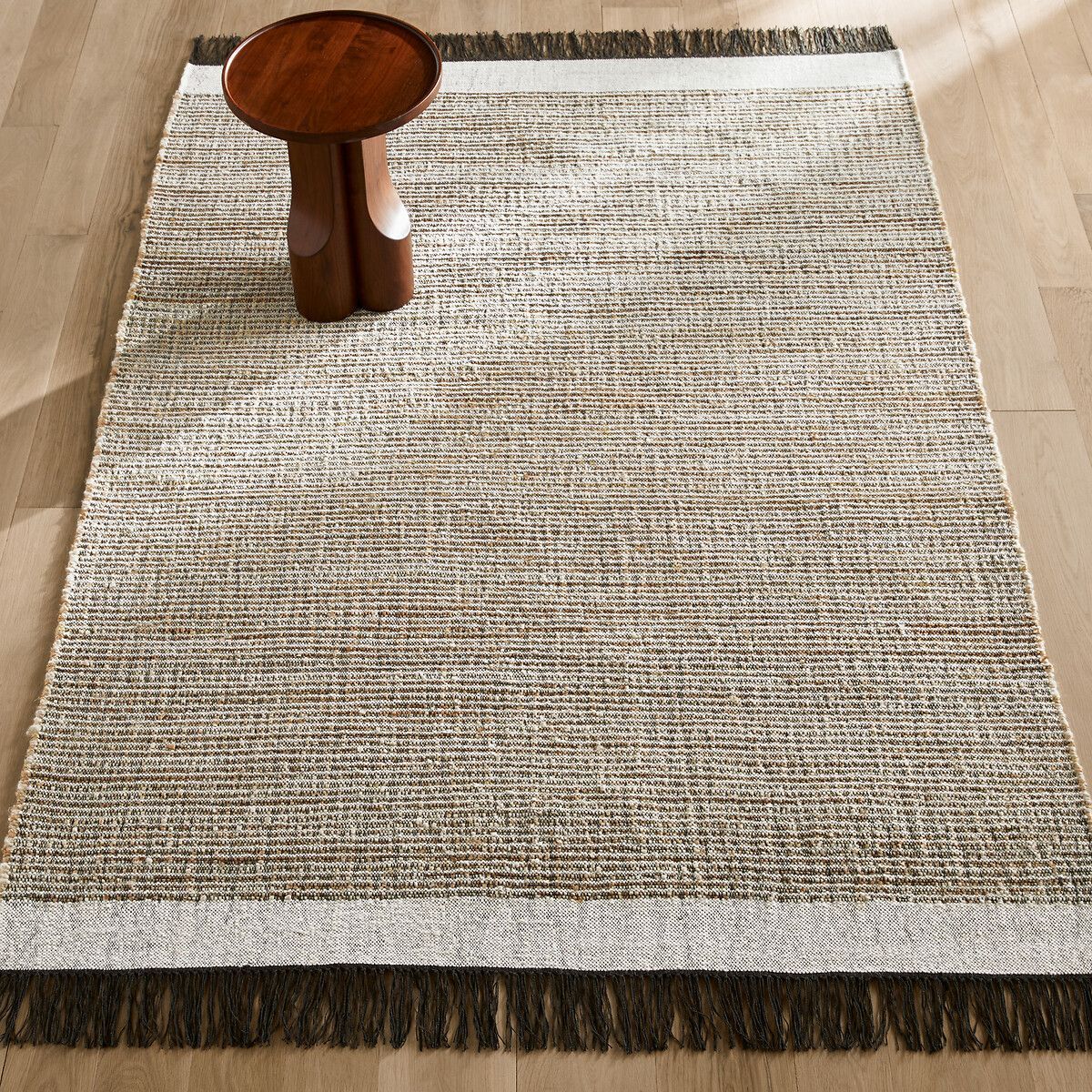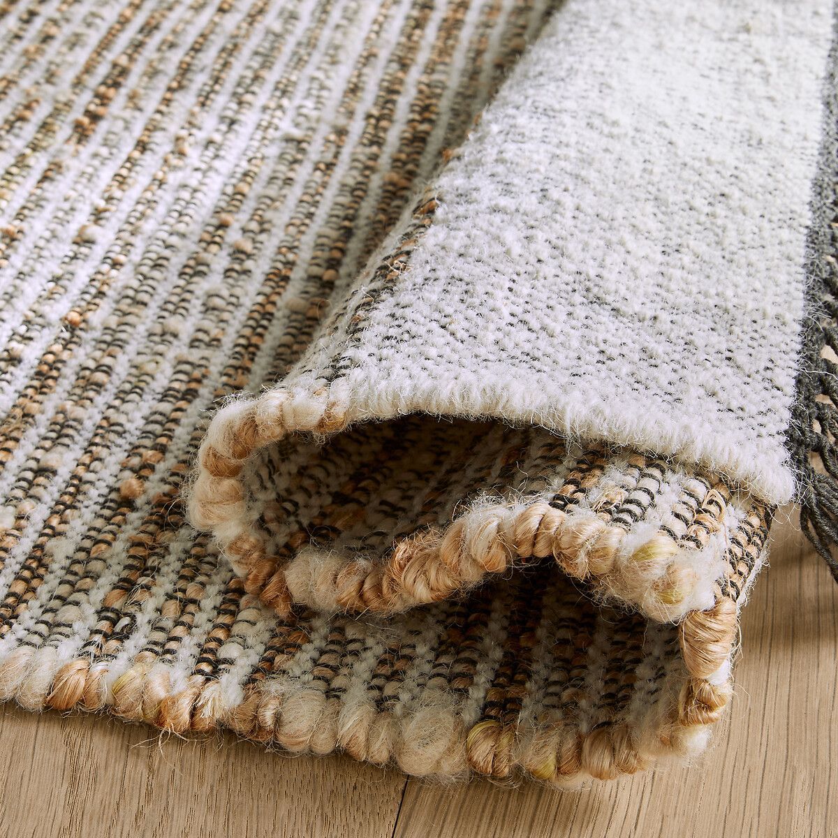 Ковер Siptah изготовлен вручную на ткацком станке в Индии. Это изделие сочетает шерсть, джут и хлопок, аутентичные материалы. Края с контрастным бордюром и бахромой. Современный, натуральный и рифленый предмет декора от AMPM.