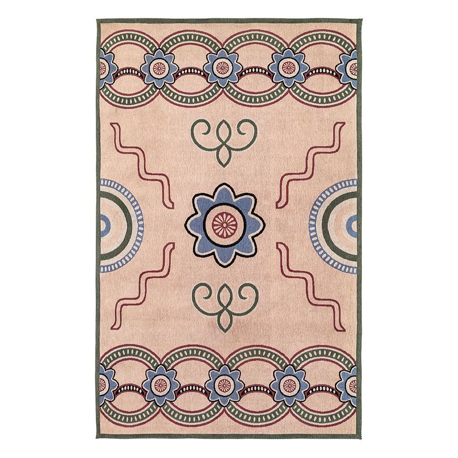 — Ковер с контрастным узором в этническом стиле привлекает внимание и может использоваться в качестве акцентного элемента.