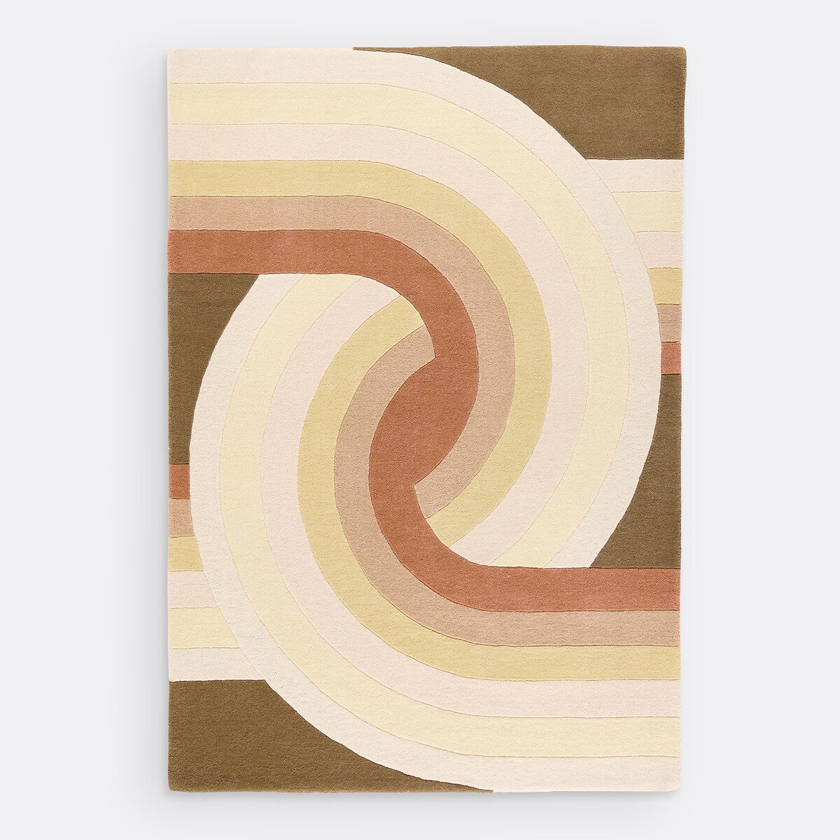 Очень графичный абстрактный принт. Явная ссылка на стиль 70-х. Изготовленный из плотной шерсти ковер Elida — произведение искусства, которое взорвет ваш интерьер. Творение La Redoute Intérieurs.