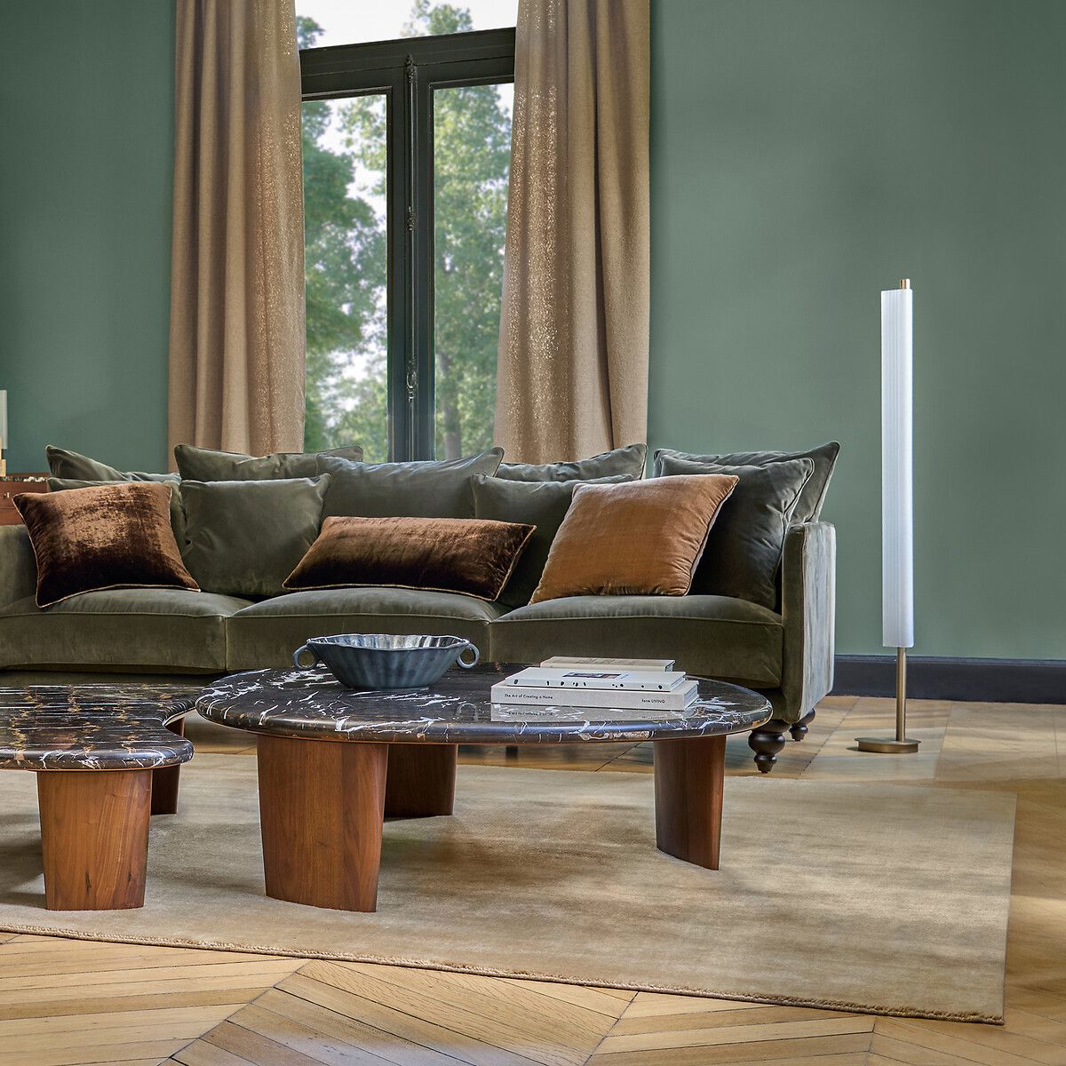 Кашемир из шерсти исключительного качества — невероятно мягкий на ощупь и очень теплый. Шелковистый, но не блестящий, на нем переливаются цвета. Каждый ковер имеет свои оттенки, которые меняются в зависимости от направления велюровой ткани. Такая техника производства придает ему его пышность и плотность. Для декора на долгие годы.