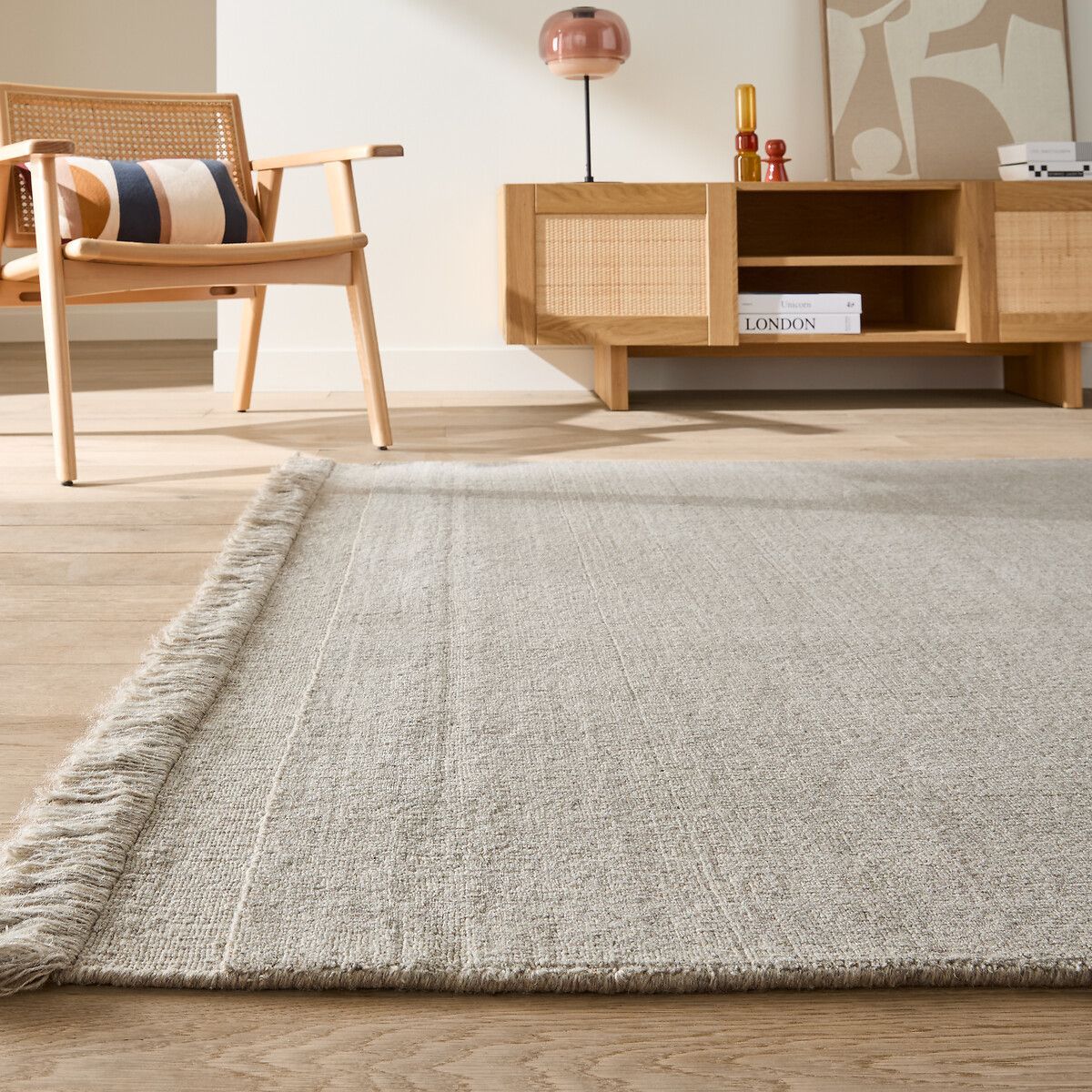 Сдержанный дизайн, неподвластный времени. Ковер Osni достаточно прост, чтобы вписаться в любое жилое пространство. Окантованный с обеих сторон бейкой и бахромой, сплетенной вручную, ковер из шерсти и хлопка радует удобством и мягкостью.