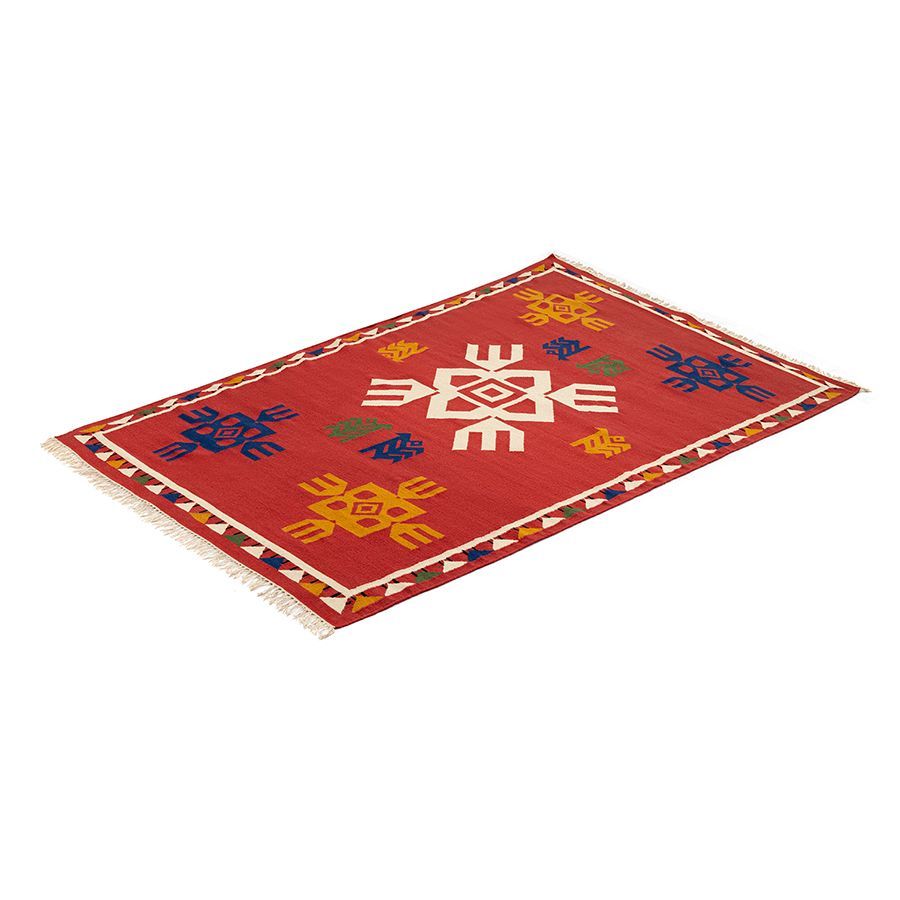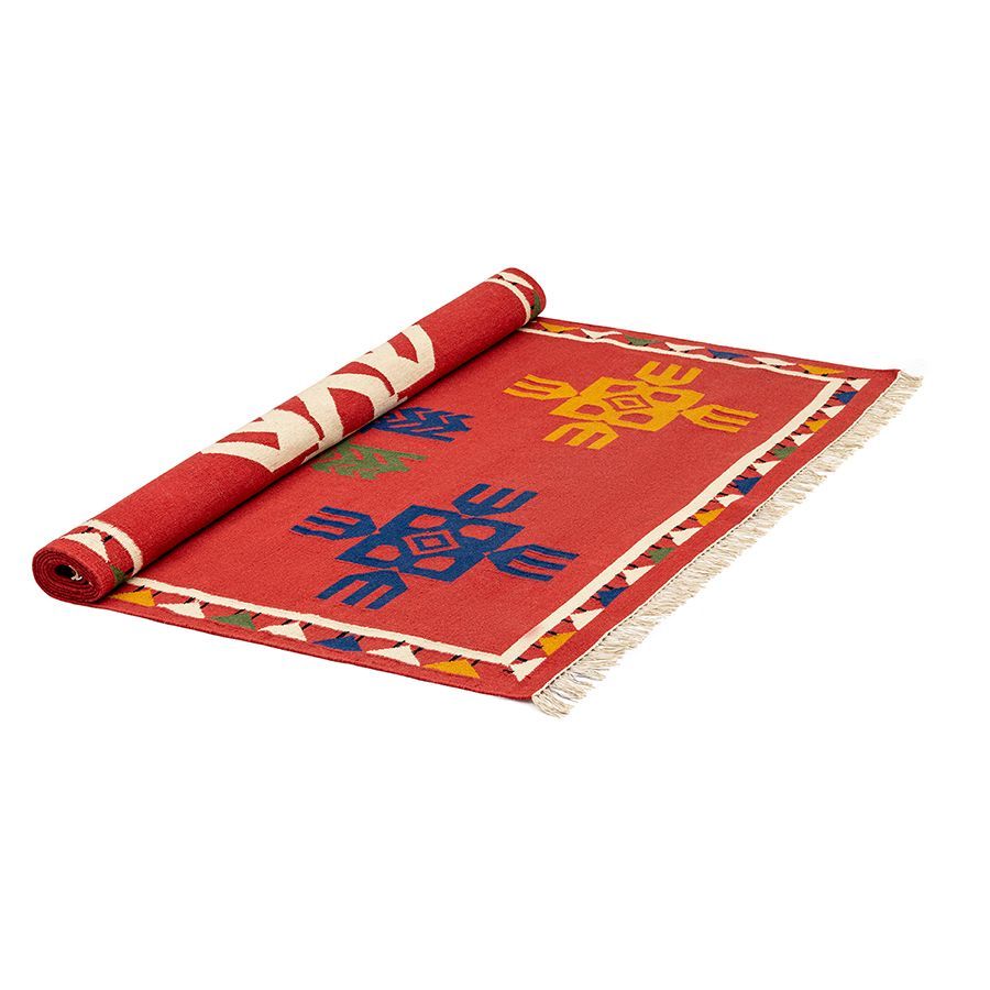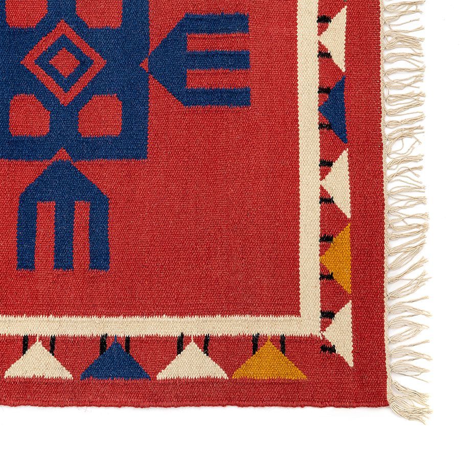 — Ковер с контрастным узором в этническом стиле привлекает внимание и может использоваться в качестве акцентного элемента.