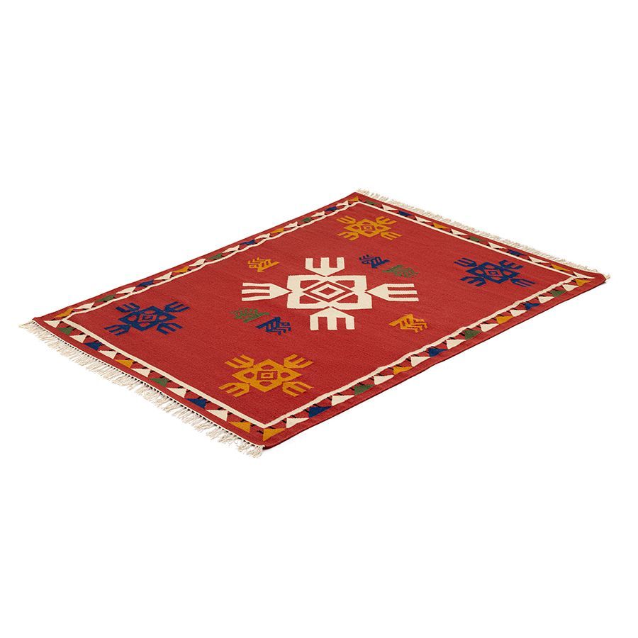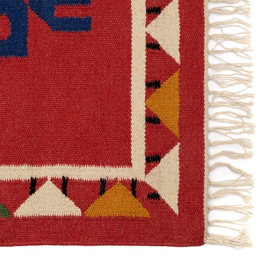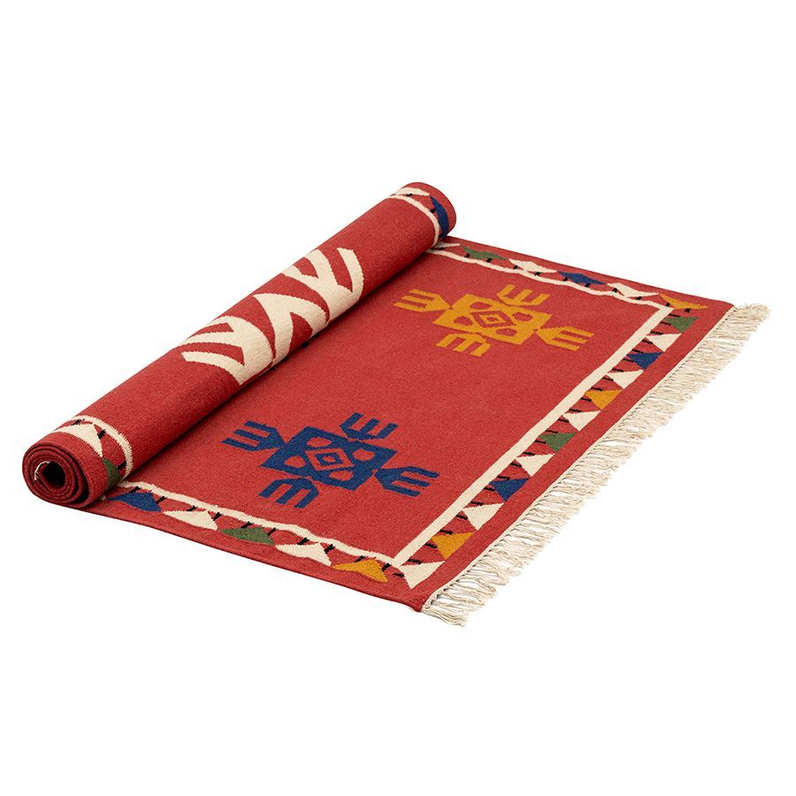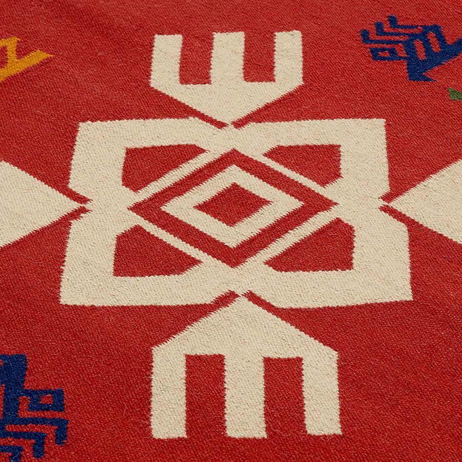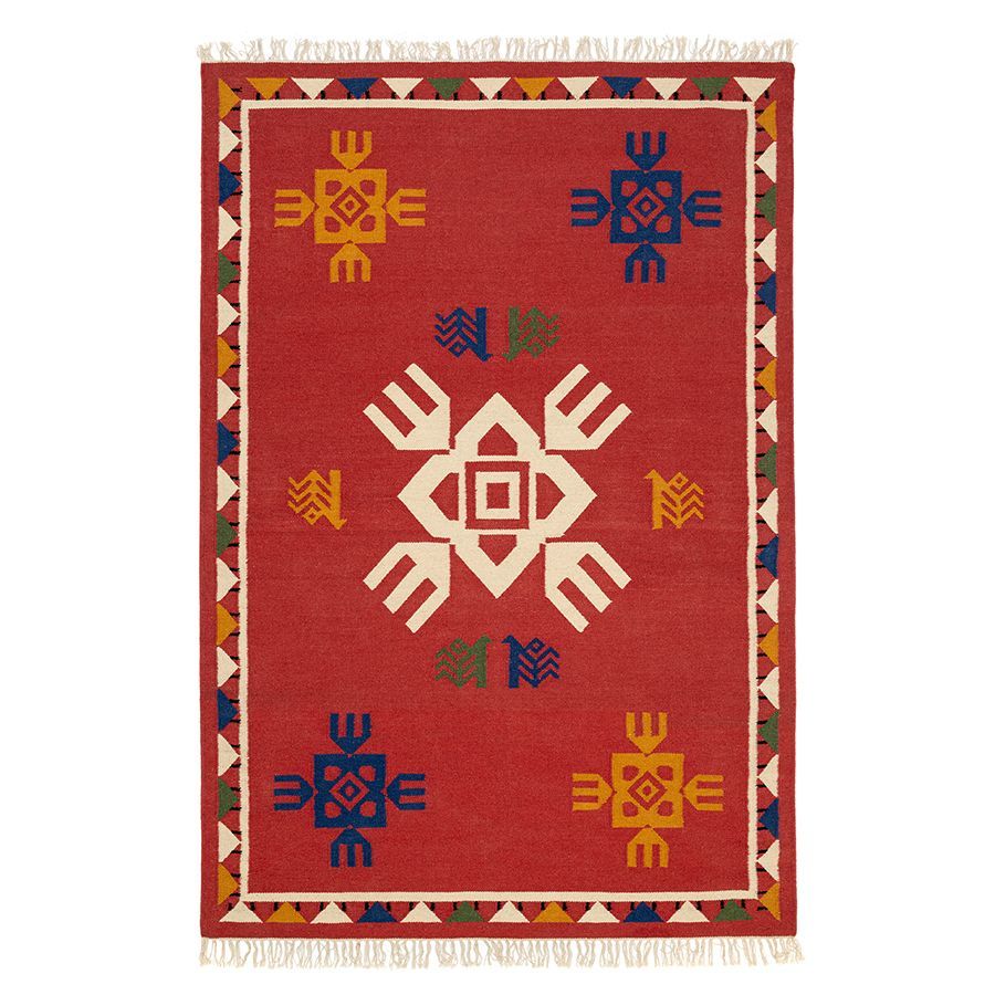 — Ковер с контрастным узором в этническом стиле привлекает внимание и может использоваться в качестве акцентного элемента.