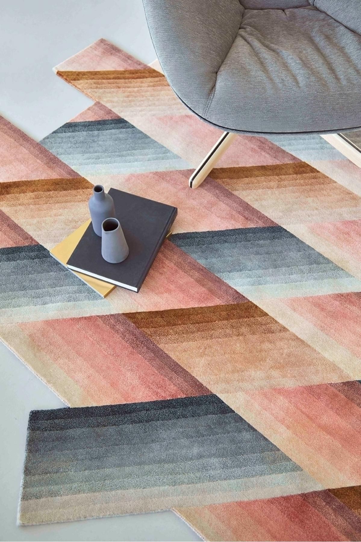 Mirage - нетипичный ковер не только из-за неправильной формы, но и потому, что он создает особый эффект как в человеке, созерцающем его, так и в пространстве, которое он занимает. Чередование цветов и разная ориентация градиентов создают привлекательную визуальную игру, сделанную из новозеландской шерсти. Mirage не вызывает равнодушия.