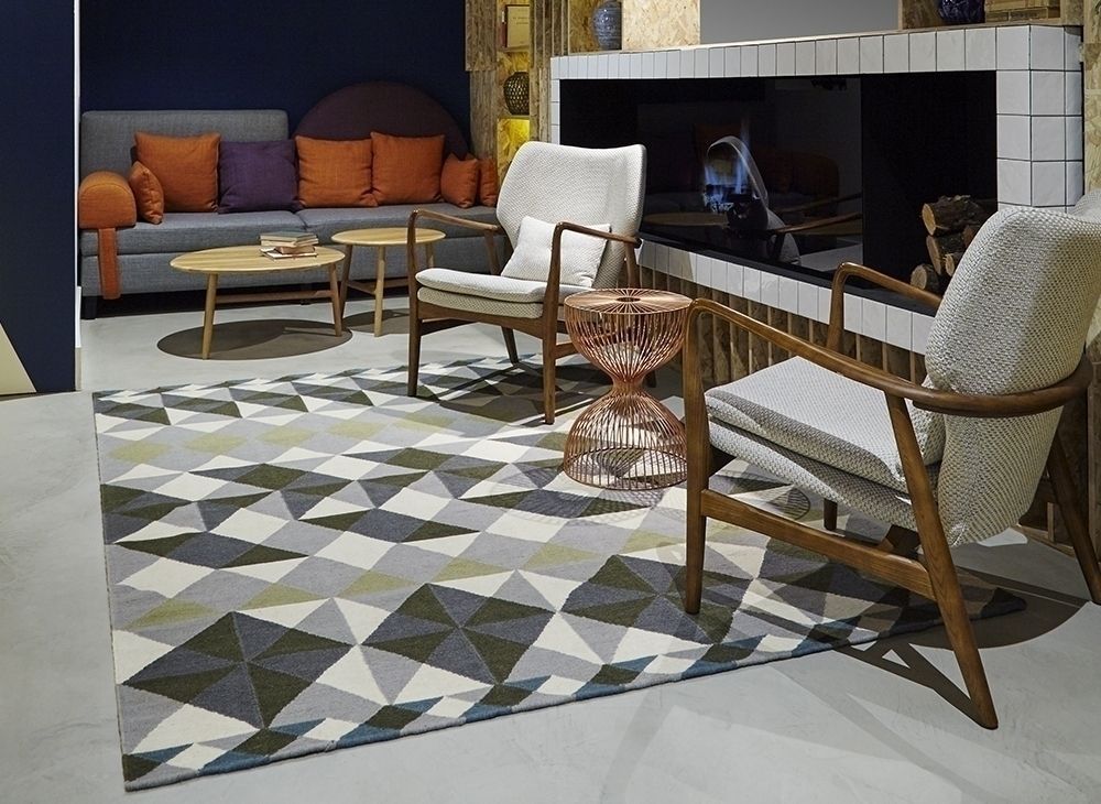 Mosaïek - это потрясающий ковер ручной работы с геометрическим узором, в котором треугольники и ромбики, кажется, перекрываются, создавая цветовые градиенты. Узор напоминает мозаику Nolla, традиционный узор плитки, очень характерный для испанского Средиземноморья, состоящий из небольших геометрических кусочков керамогранита.