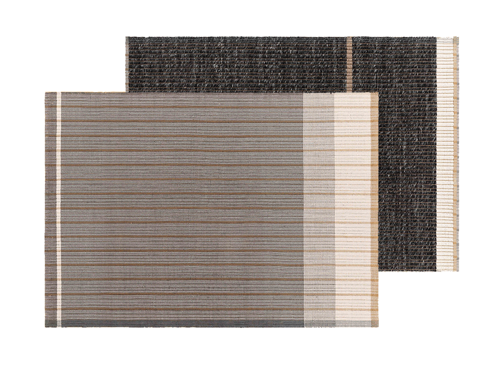 Новая и сложная техника ручной ткацкой обработки, специально разработанная для этой коллекции, сочетает нити разной толщины и материалов, одновременно создавая две ОБРАТИМЫЕ отделки: 100% натуральную
