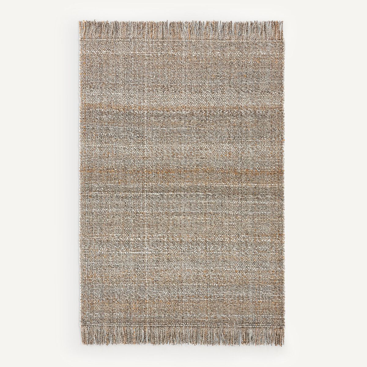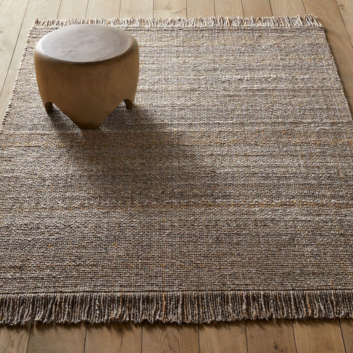 Шерстяной ковер с теплым оттенком. Переплетение охристых и серых волокон создает пестрый эффект с глубокими отблесками. Каждое творение уникально.