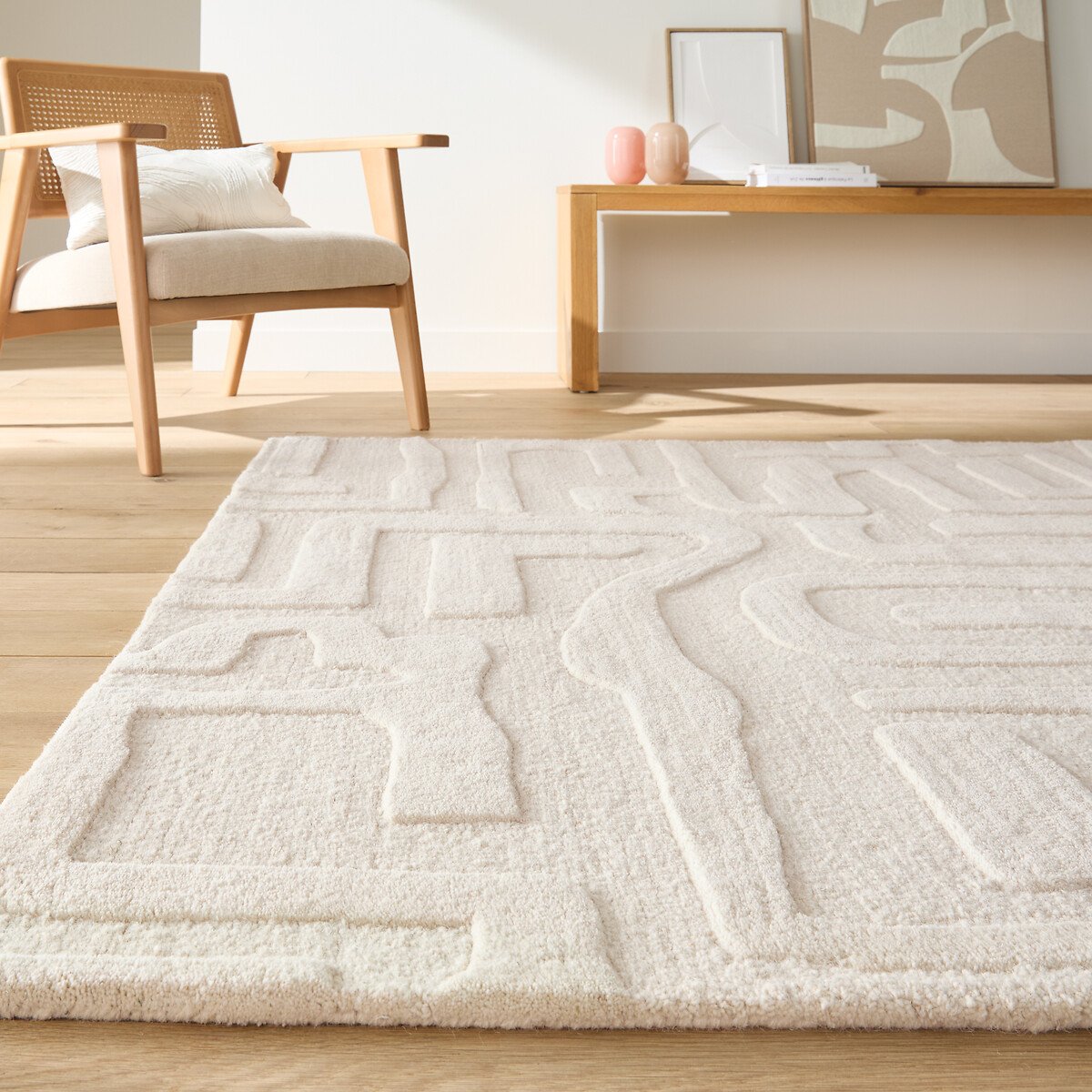 Узор с изгибами и рельефом. Ковер Melko / Мелко сочетает эффекты на однотонном материале для создания органичных узоров, вдохновленных самой природой. Произведен из шерсти, его мягкая структура передаст тепло вашему дому.Изготовлен вручную, каждое изделие уникально.Описание • 100% шерсть • 2500 г/м² • Толщина: 0,5 мм • Рельефные узоры • Способ производства: ручная работа • Совместим с системой теплого пола: да • Использование в помещении: да • Использование на улице: нетКачество • Шерсть -- теплый и практичный материал. Ковер из шерсти отличается отличной тепло- и звукоизоляцией. • Каждое изделие сплетено вручную. Небольшая разница в цвете и размерах делает его уникальным и особенным.Рекомендации по использованию • После вскрытия упаковки ковер в течение некоторого времени может сохранять элементы деформации вследствие долгого нахождения в скрученном виде, но уже через 1-2 недели он полностью выпрямится. • Чтобы расправить края, сверните ковер обратной стороной внутрь. Оставьте ковер на час в таком положении, затем разверните и на два дня положите на него сверху тяжелый предмет. • У новых ковров может присутствовать естественный запах. Он абсолютно безопасен и исчезнет через короткое время при частом проветривании. • Чтобы ковер меньше изнашивался и выцветал, раз в полгода его следует поворачивать на 180° для равномерного распределения нагрузки.Уход • Некоторые материалы, такие как шерсть, очень ворсистые, поэтому в течение первых недель использования можно заметить некоторое сваливание: это нормально, так как ковер сбрасывает лишний ворс. Соберите ворс рукой, насколько это возможно. Не применяйте турбощетку или щетку с жестким ворсом. Процесс выпадения постепенно прекратится. • В первое время мы рекомендуем не пылесосить ковер слишком часто и в дальнейшем не использовать турбощетку или щетку с жестким ворсом. • Чистка роботом-пылесосом: нет. • При появлении пятен промокните их чистой влажной тряпочкой. • Рекомендуется химчистка.Размеры • Ширина 120 x длина 170 см • Ширина 160 x длина 230 см • Ширина 200 x длина 290 см • OEKO-TEX® Standard 100. Standard 100 от OEKO-TEX® -- это единая во всем мире система испытаний и сертификации текстиля, основанная на оценке его влияния на здоровье человека. Сертификат OEKO-TEX® Standard 100 гарантирует, что в текстильном изделии отсутствуют вредные и опасные для человека вещества.