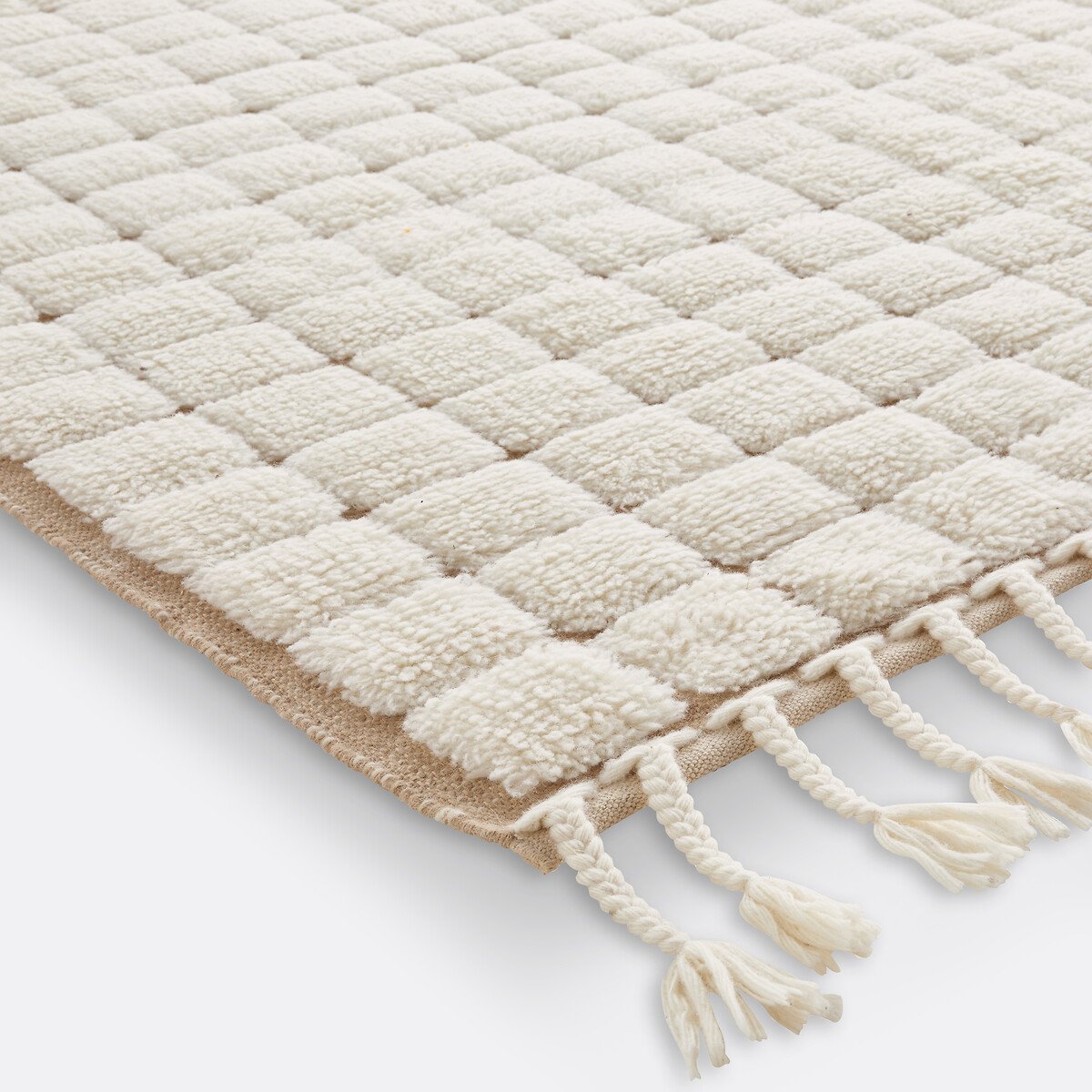 Изготовленный вручную ковер Ladama с графичным и неподвластным времени клетчатым узором. Отлично впишется в современный интерьер.