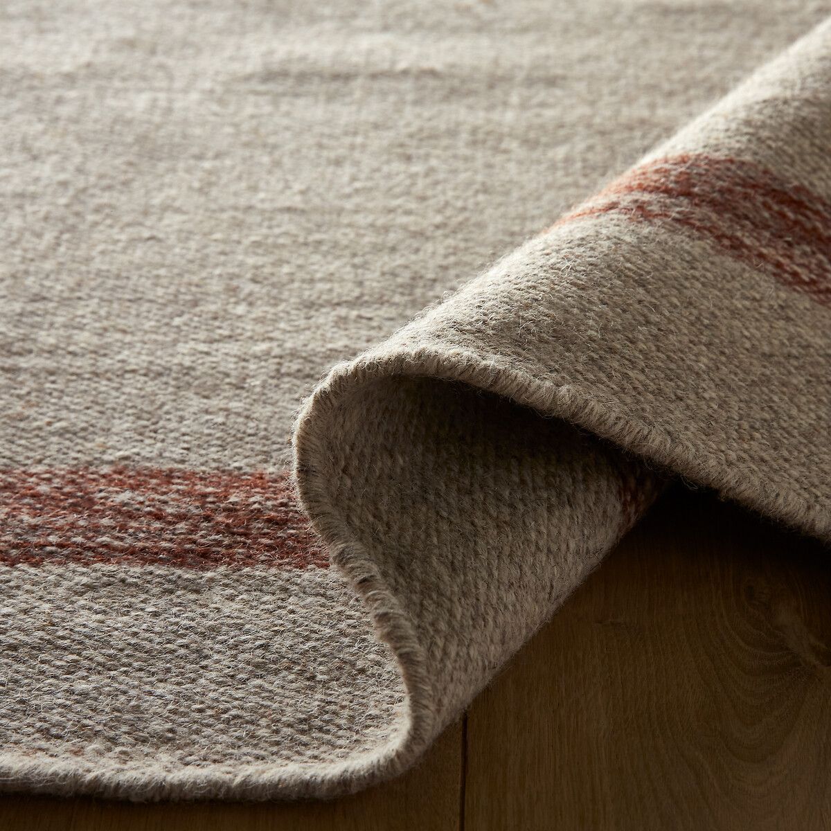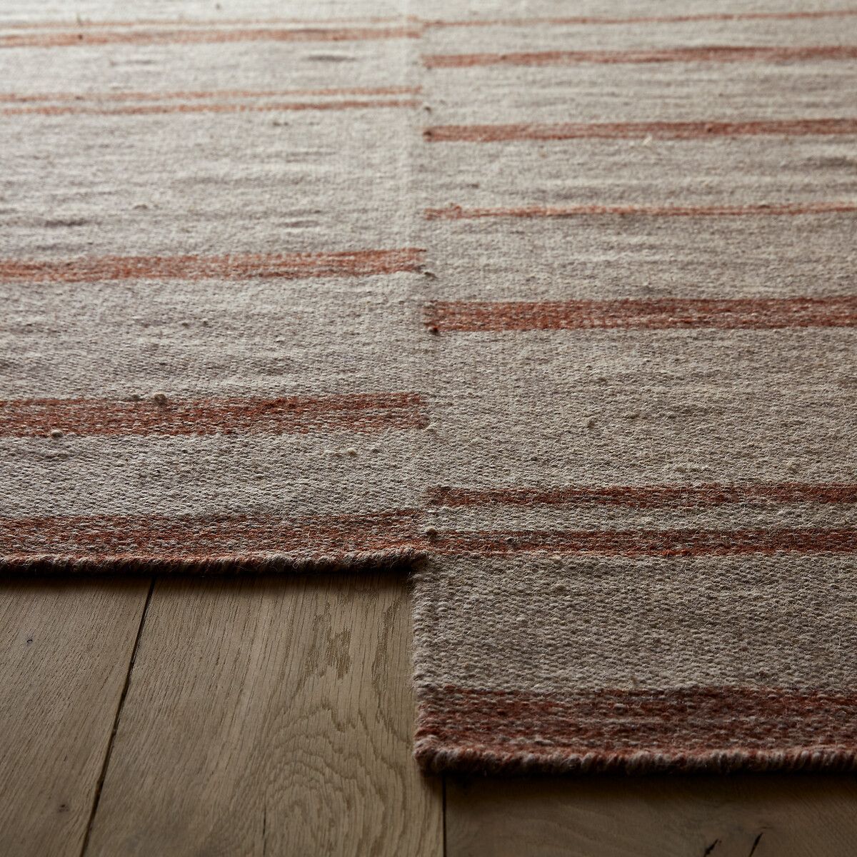 Ковер Abriel визуально поражает своим эффектом с 4 полосками с выступающими краями. Современный ковер килим с плотным плетением, изготовлен по ремесленным принципам производства в Индии.