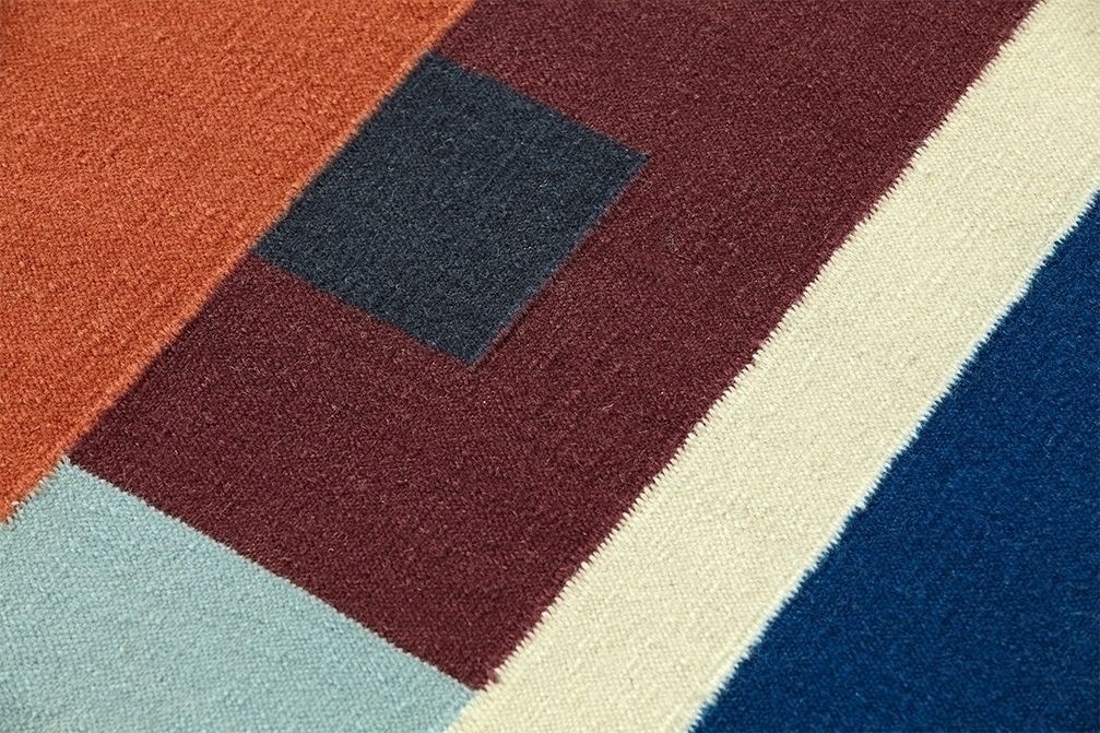 ZOE - результат первого сотрудничества Дарьи Зиноватной и GAN. В этой серии самым чистым образом выражена важность формы и цвета для украинского дизайнера. Ее творения текут на чистом холсте, в котором сочетаются текстуры, геометрия и цветовые планы. SOOL, один из двух ковров, входящих в коллекцию, изготовлен с использованием техники килим, древнего метода изготовления плоских и легких ковров благодаря утку шерстяных волокон, покрывающих основу нити.