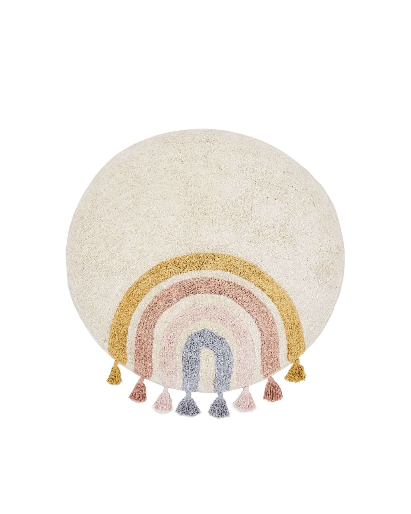 Эта коллекция полностью выполнена из хлопка, что обеспечивает ей исключительную мягкость и приятную на ощупь текстуру. Каждое изделие соткано вручную, что делает его уникальным, а небольшие вариации подчеркивают его эксклюзивность и особый характер. Дизайн украшен радужными рельефами и бахромой – декоративными деталями, которые добавят красок в любую детскую комнату. Эта коллекция, предназначенная для повседневной жизни, подходит для машинной стирки, что облегчает чистку и позволяет детям всегда наслаждаться комфортом.