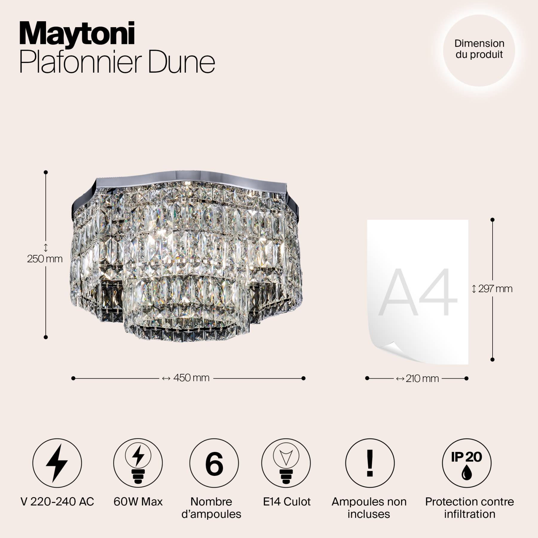 Металлическая арматура в двух оттенках: хром, золото. Декор – прозрачные кристаллы. Потолочные модели имеют два яруса подвесок. Высота подвесной люстры регулируется тросом.