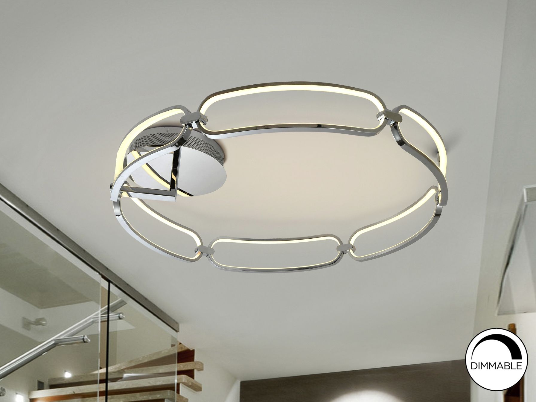 Потолочный светильник LED большого размера, из алюминия с покрытием "хром". Силиконовые рассеиватели опалового цвета, 65W LED, 5850 Lm, 3000 K.