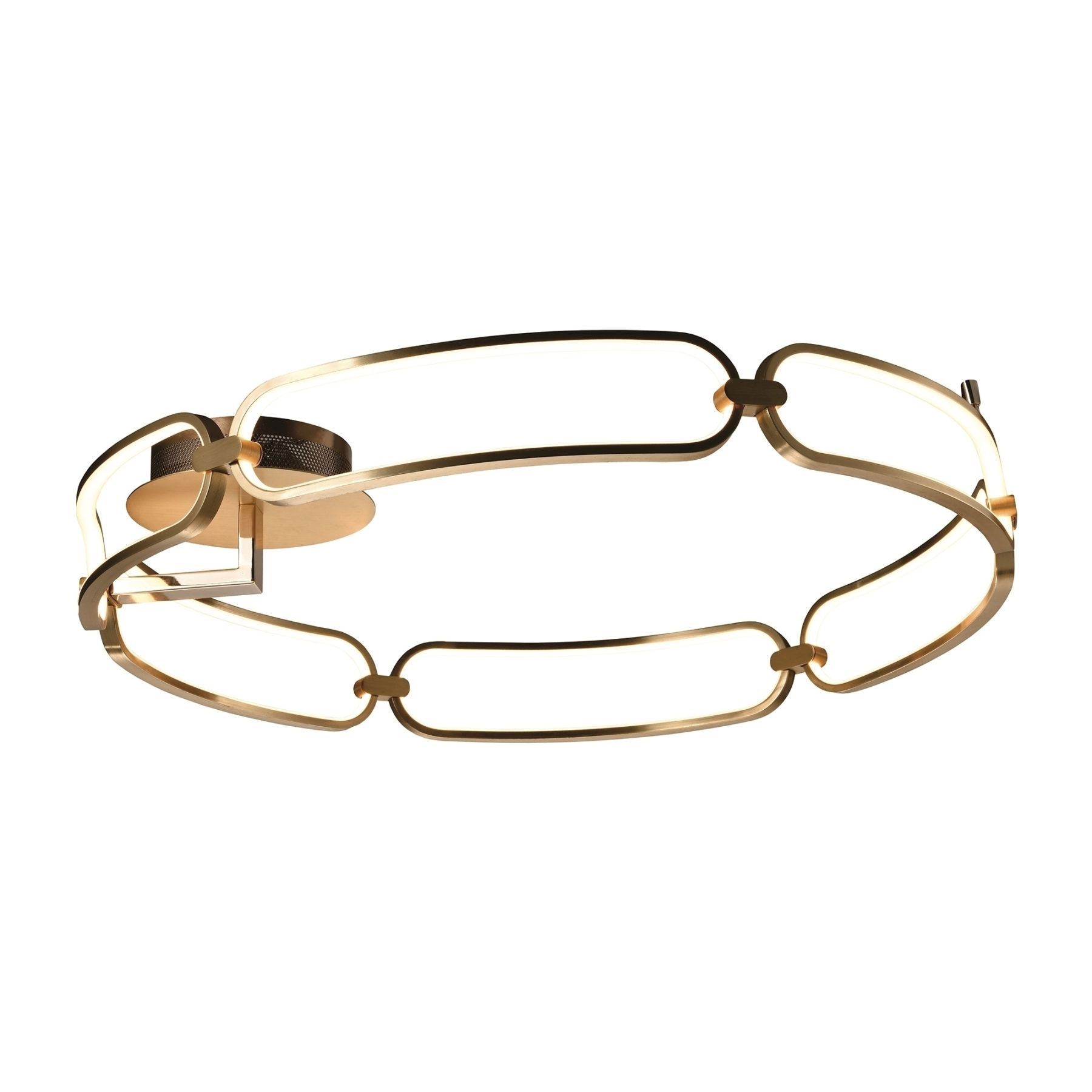 Потолочный светильник LED большого размера, из алюминия с матовым полированным золотистым покрытием. Силиконовые рассеиватели опалового цвета, 65W LED, 5850 Lm, 3000 K.