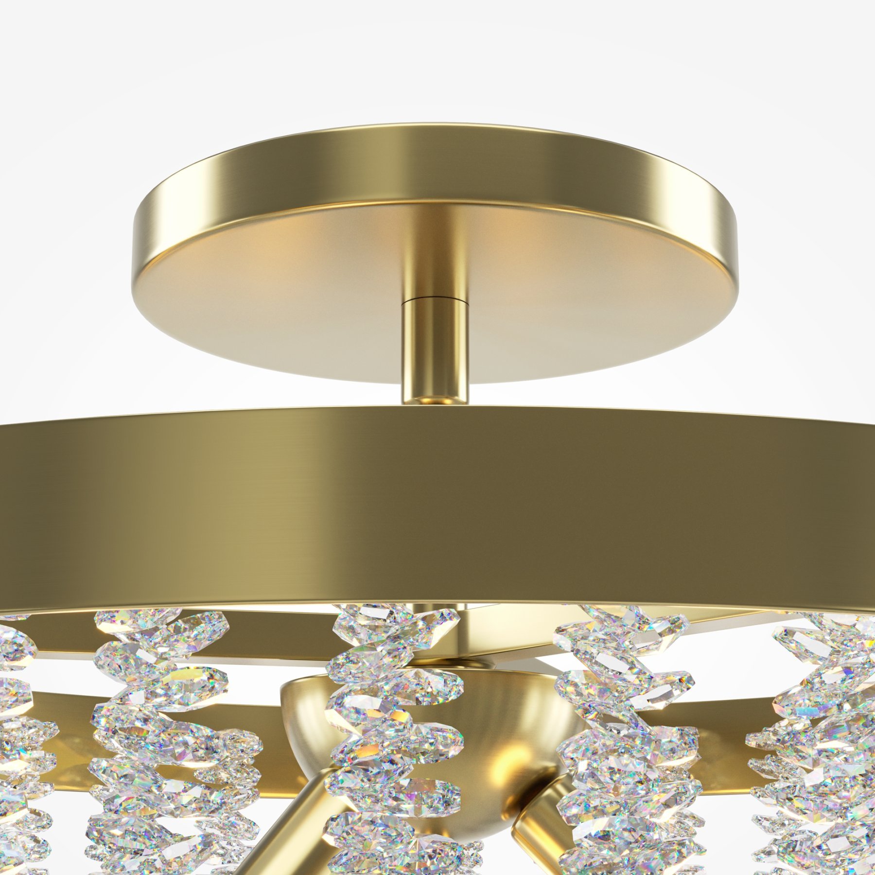 Серия Intrigue включает потолочные и подвесные светильники. Арматура: металл цвета сатинированной латуни. Декоративные элементы: нити из множества мелких хрусталиков. Цоколь: E14. Высота потолочного светильника всего 412мм, длина цепи подвесной люстры – 3м. Хрусталь создает сложную игру бликов. Классический дизайн в современном исполнении. Предназначен для создания акцентного освещения в интерьерах классического и современного стилей. Рекомендуется для гостиных, столовых, спален и кабинетов.