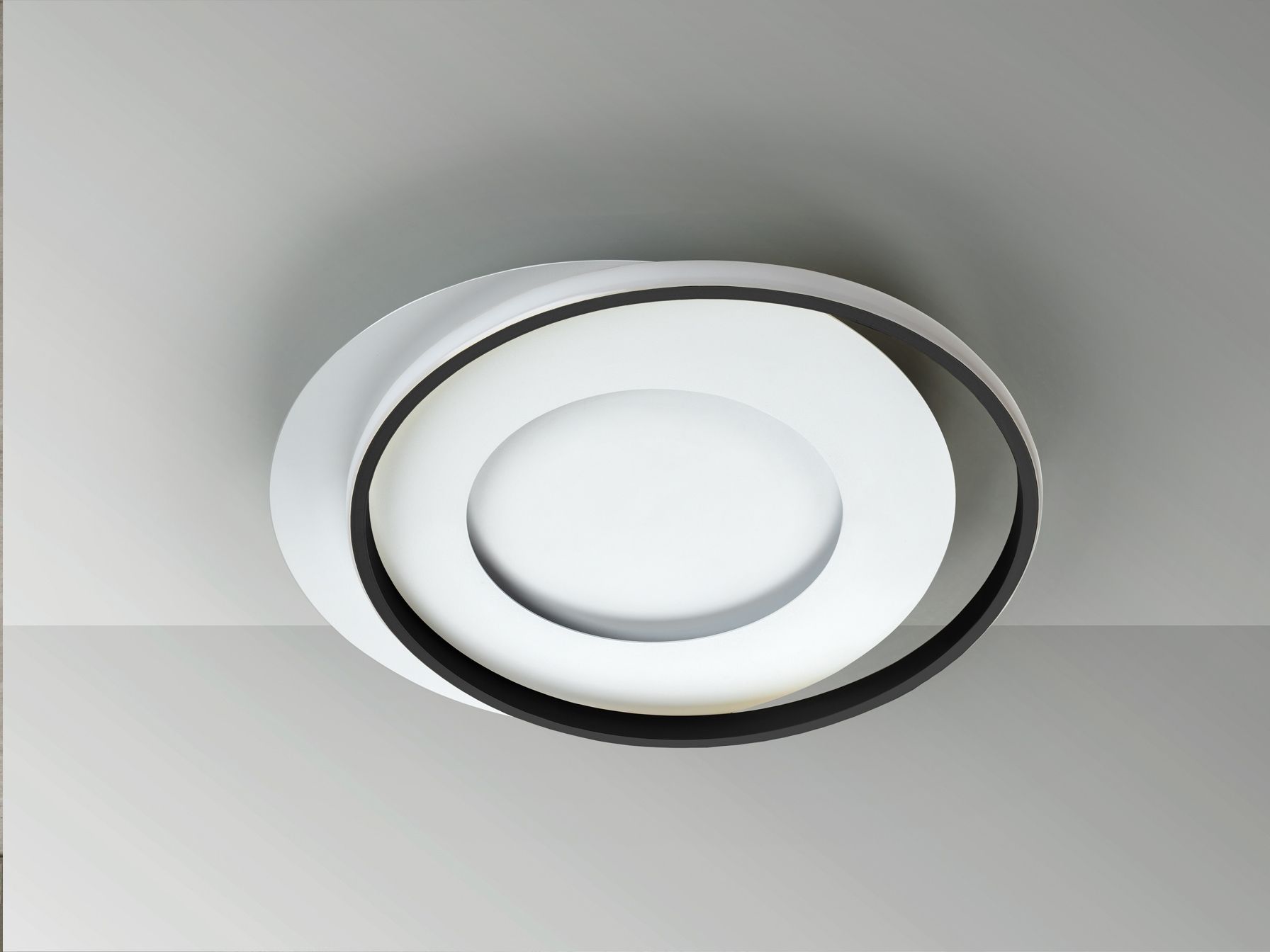 Потолочный светильник из металла и алюминия с матовой белой и черной отделкой. Опаловый силиконовый рассеиватель. Светодиод 40Вт. 4400 лм. 4000 К.