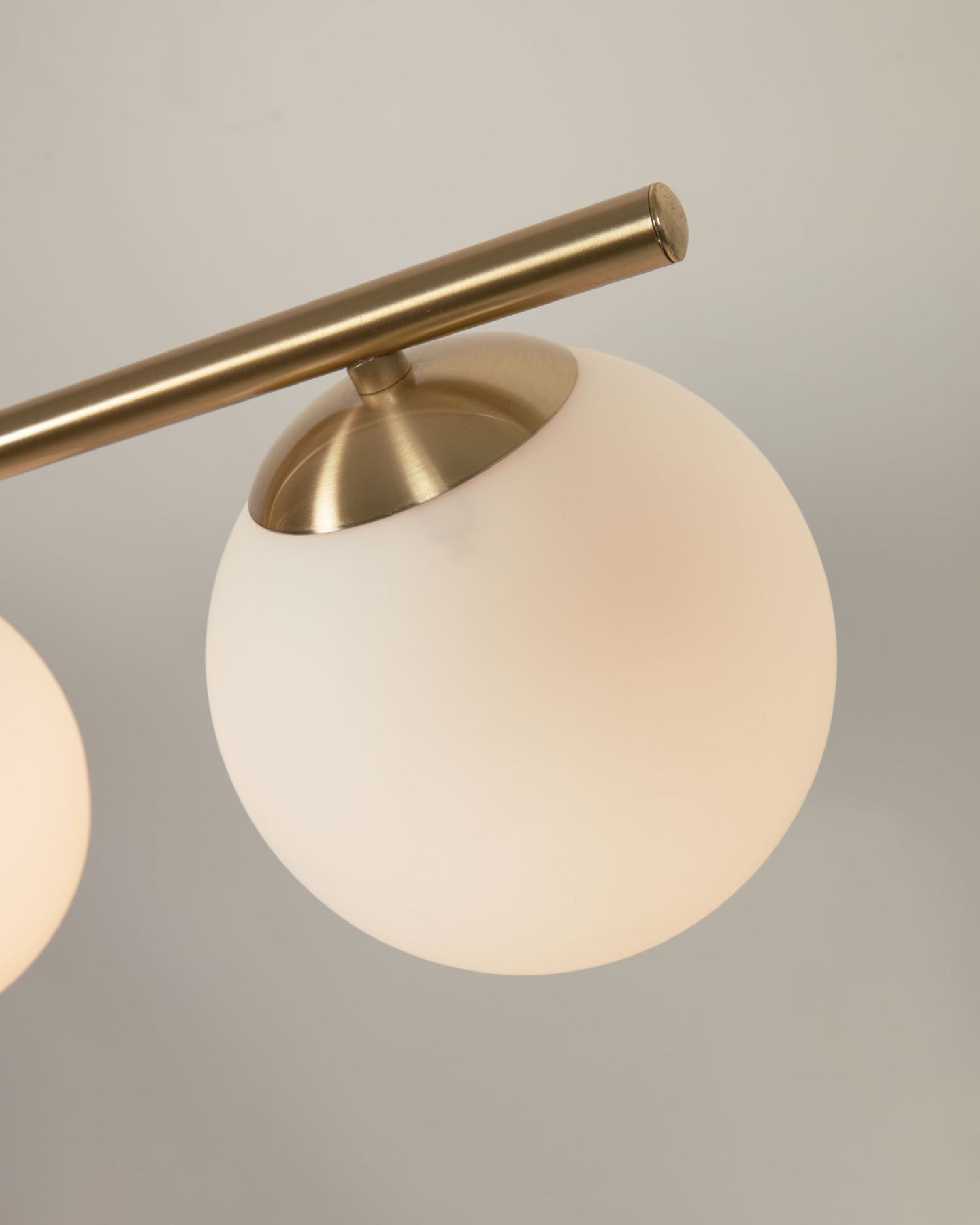 Современный дизайн и геометрические формы прекрасно сочетаются с тремя сферическими плафонами Mahala из матового стекла и деталями из стали с латунной отделкой. Идеальный способ стильно осветить любую комнату.