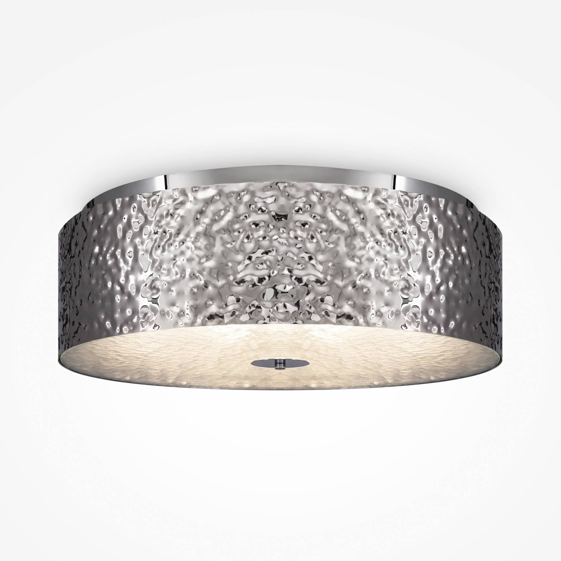 Арматура – металл в цветах хром и золото. Фактурный рисунок нанесен посредством чеканки. Стекло с рельефной поверхностью скрывает источники света. Декора тивный эффект «рябь на воде». Источник света - лампа с цоколем Е14.