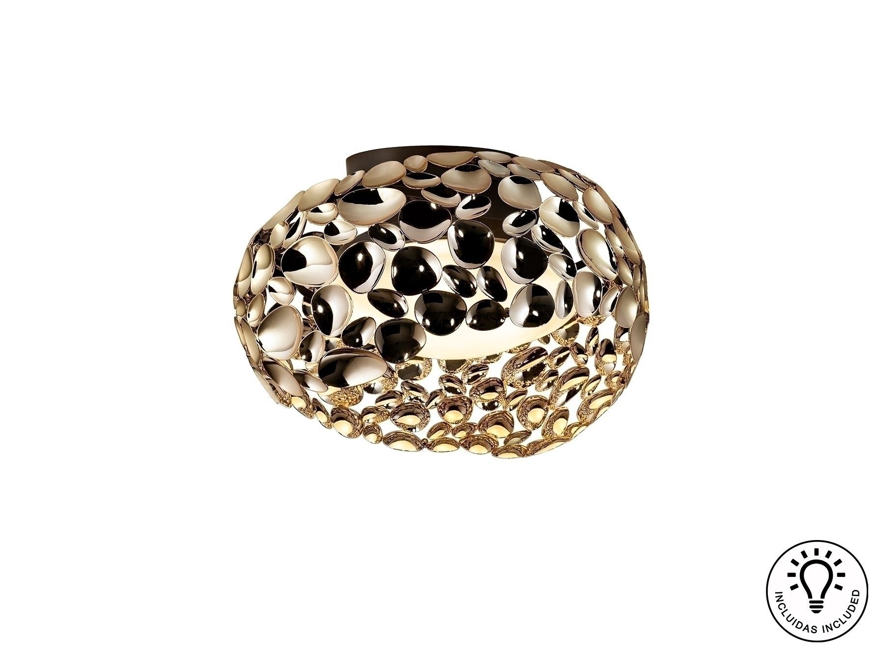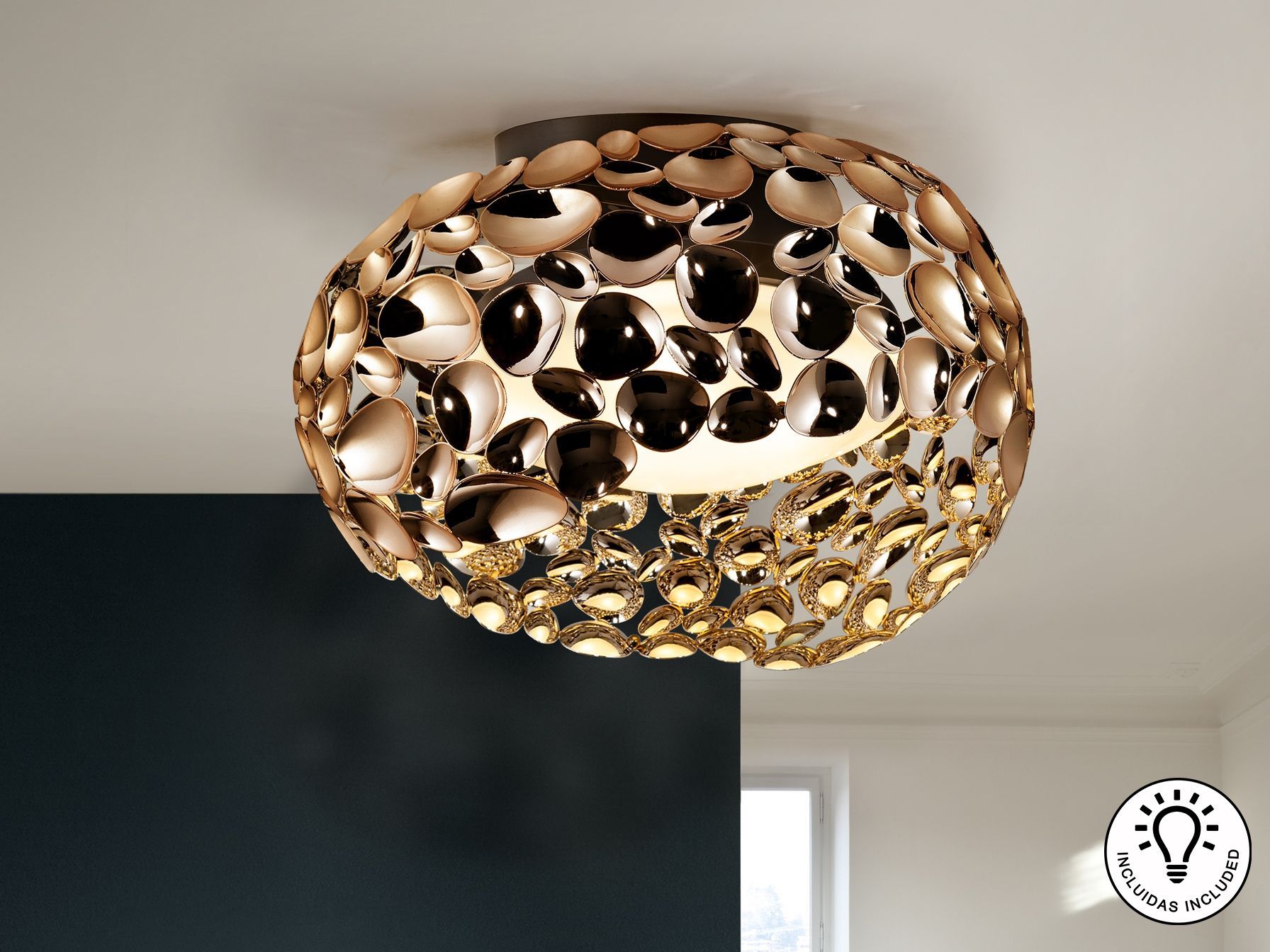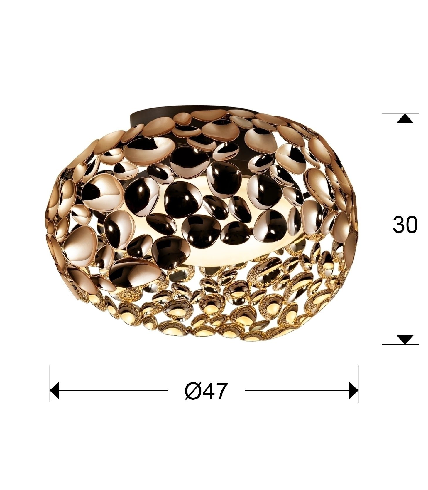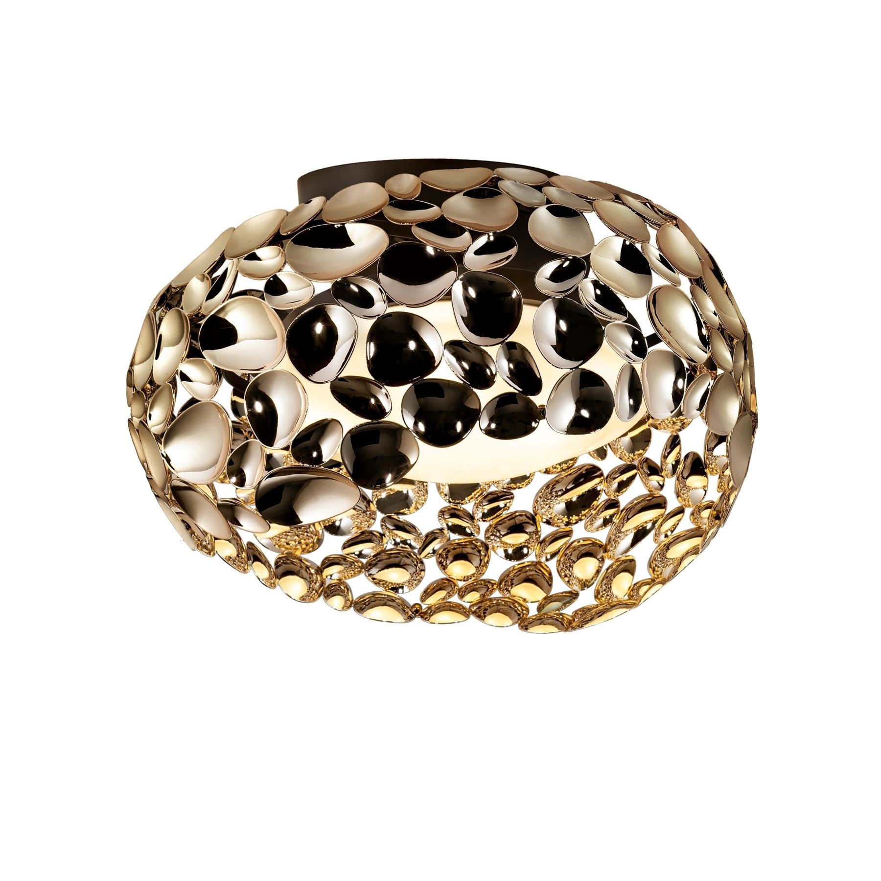 Потолочный светильник с 5 лампами, из металла с покрытием "розовое золото" и с тёмно-коричневым покрытием, акриловый рассеиватель внутри.
